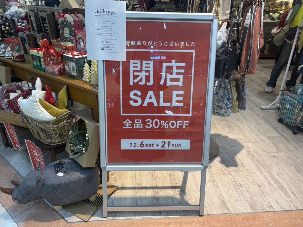 店じまいセールの期間は2019年11月2日(土)から既に始まっており、最終日は11月11日(月)までです。