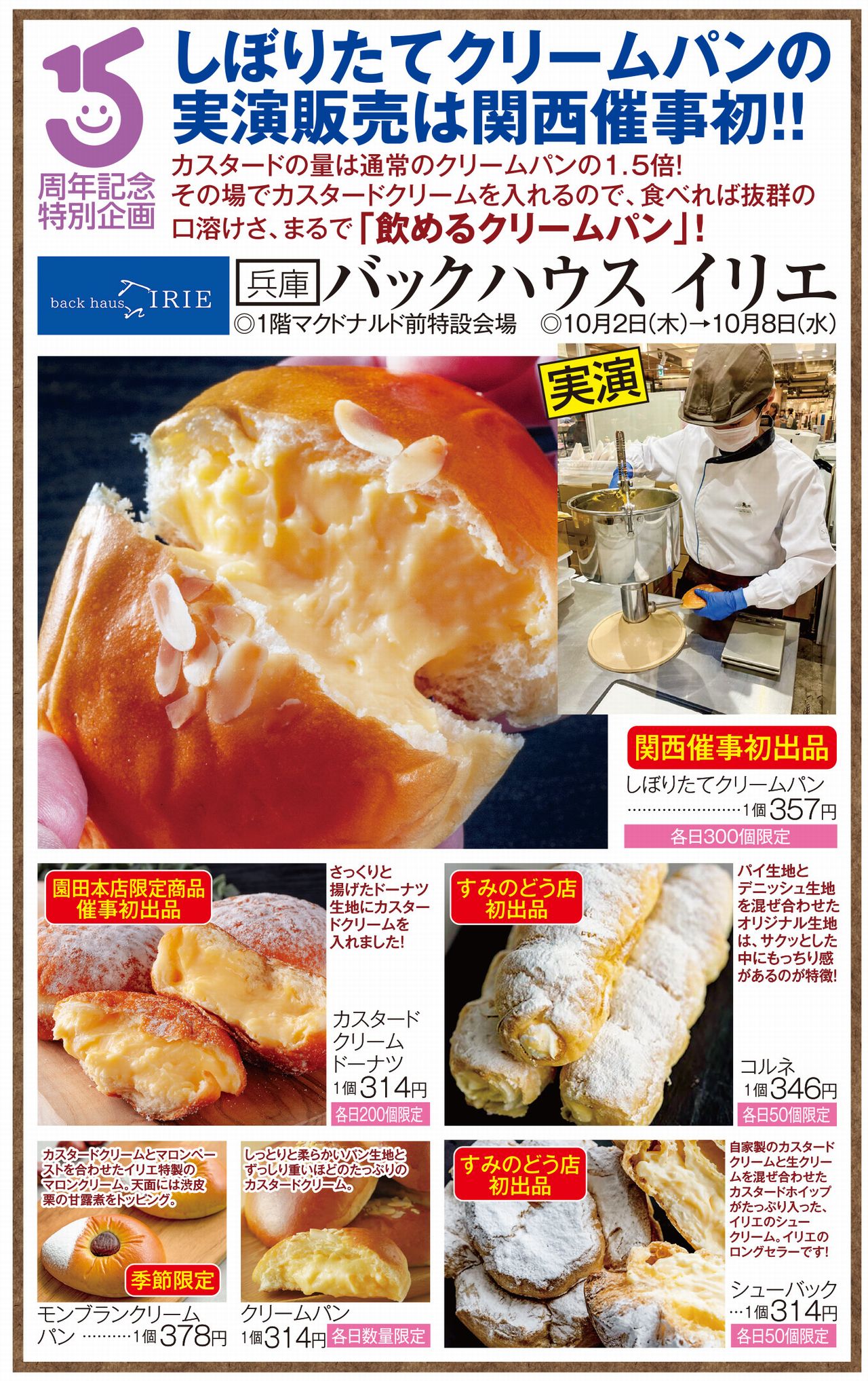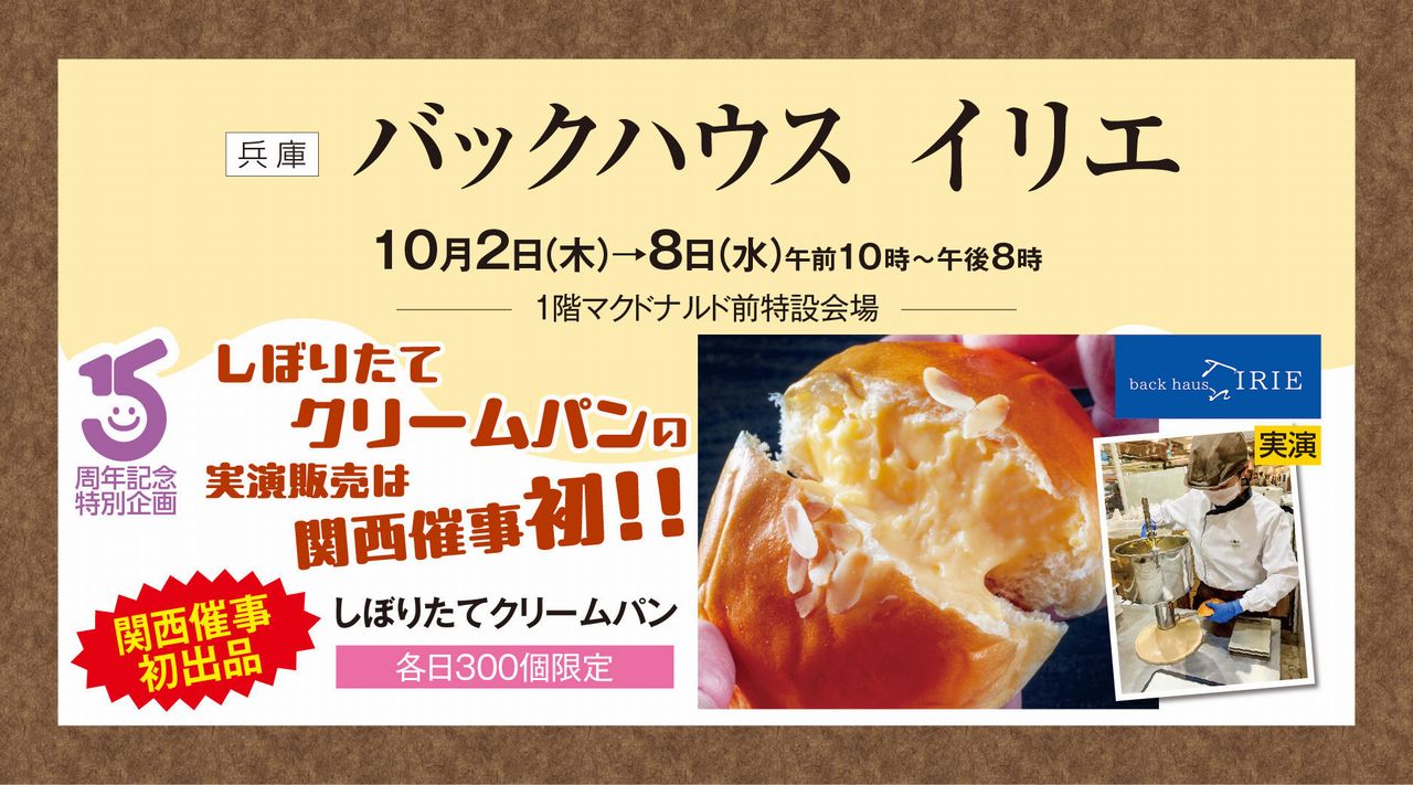 関西の催事では初の「しぼりたてクリームパンの実演販売」は、担当者が「バックハウスイリエ園田本店」まで何度も足を運び実現したそうです。他にも本店限定の商品なども販売されるようです。