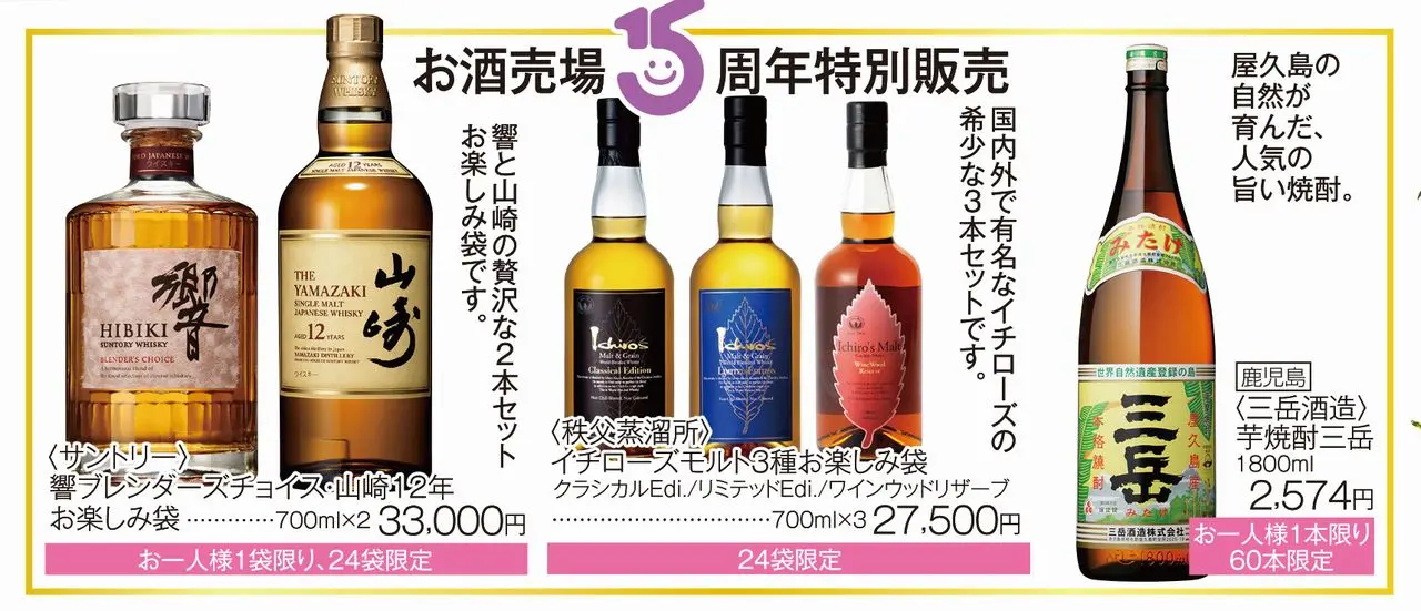 更に!リカーでは、秩父蒸留所のイチローズモルトや国産ウィスキーのお楽しみ袋が準備されたり…