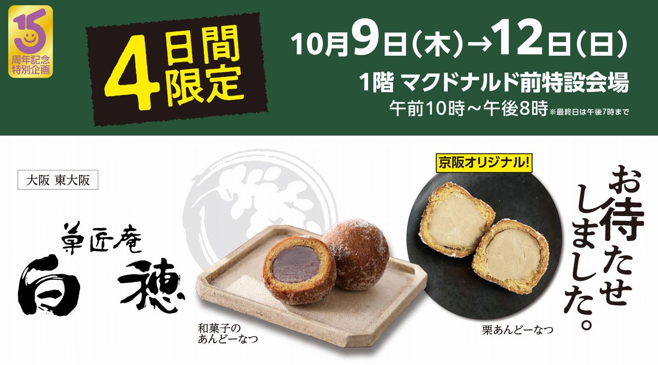前回の「バックハウス イリエ」の「しぼりたてクリームパンの実演販売」に変わり、今回は東大阪の「菓匠庵 白穂」さんが出店されます。