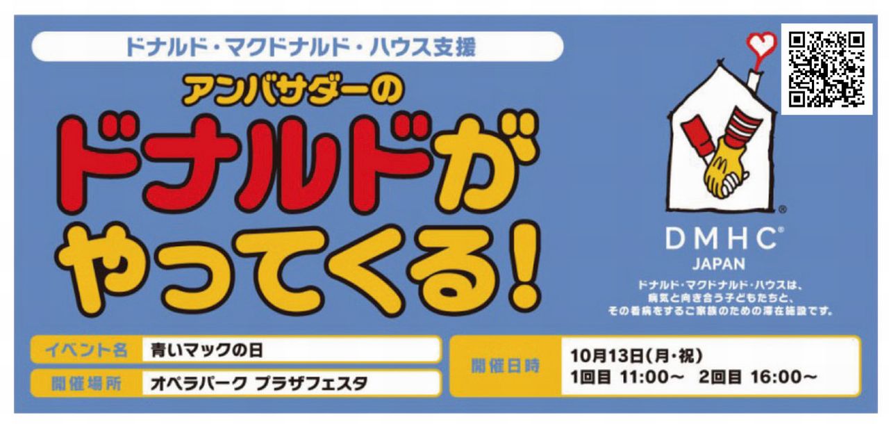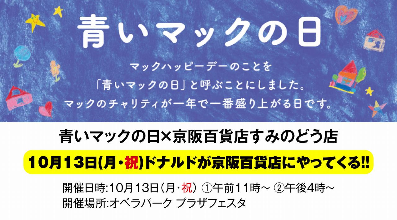 ナント!!マクドナルドの「青いマックの日」(2025年10月19日)を絡めてドナルドが京阪百貨店すみのどう店にやって来るようです。