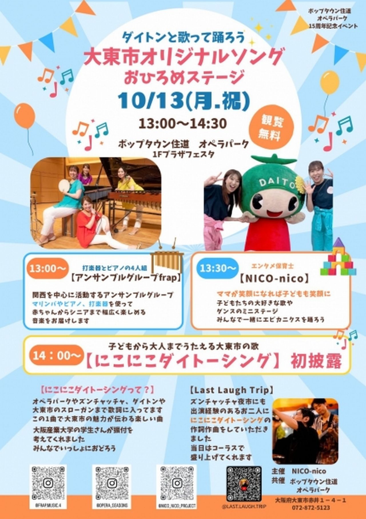 ぜひ大東市の魅力が詰まったオリジナルソング「にこにこダイトーシング」を聞きに行ってくださいね。