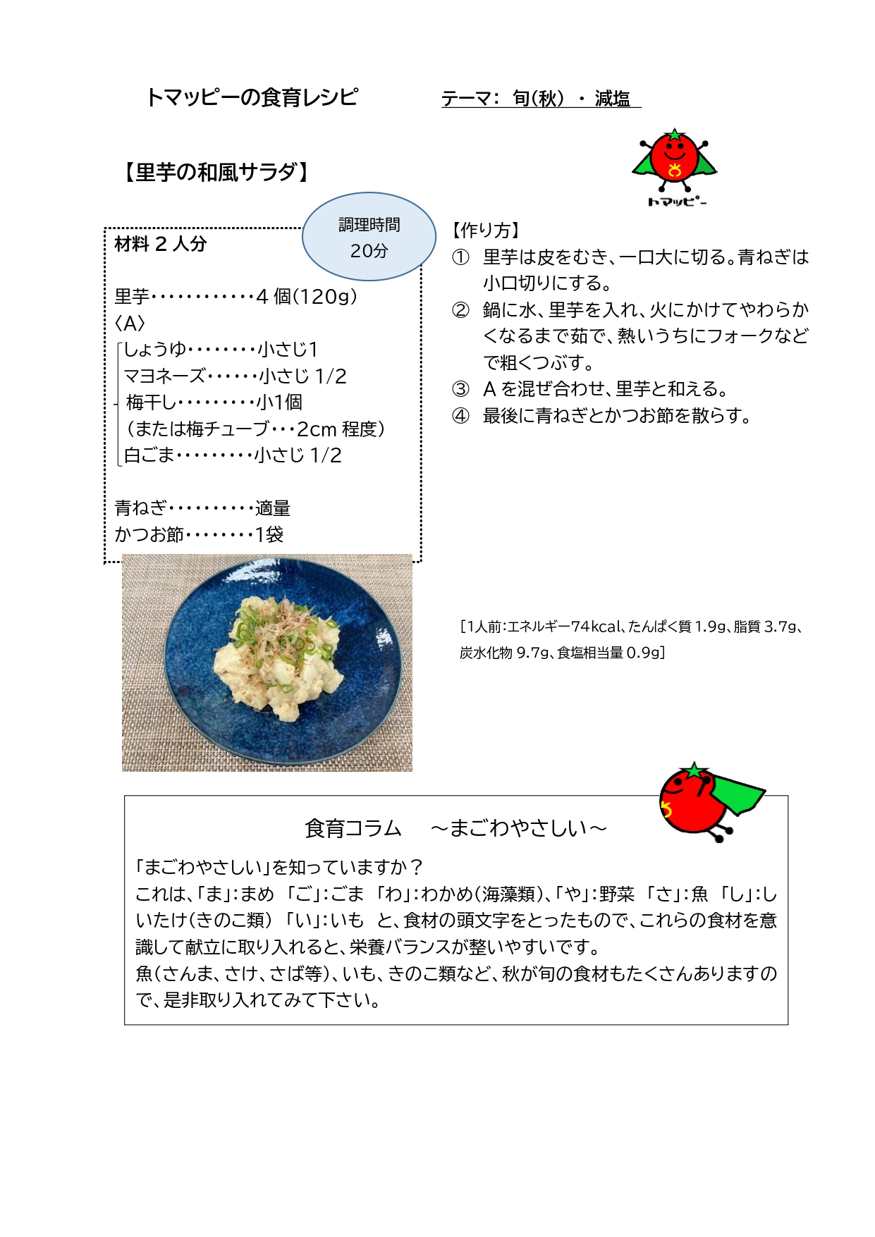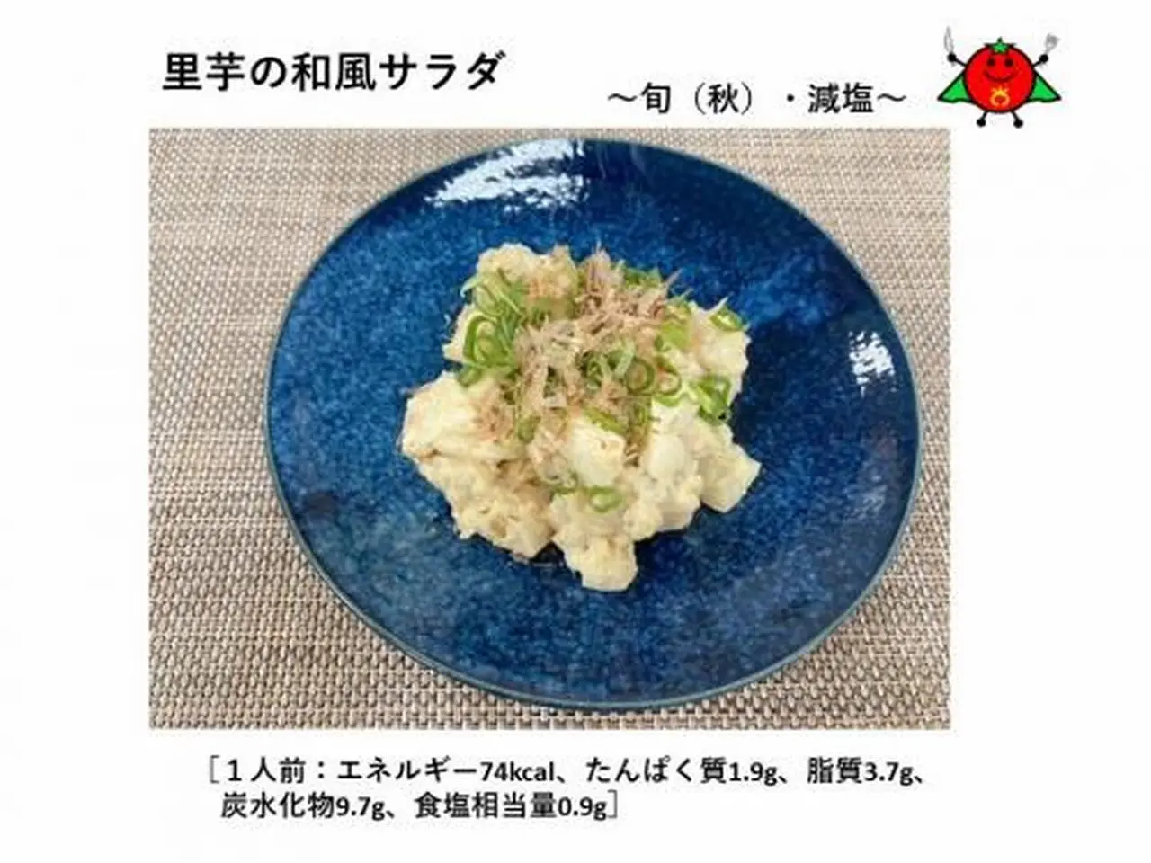 秋も深まりだし、やっと涼しいと感じることが出来る気候になって来た2025年10月19日の食育の日レシピは…「里芋の和風サラダ」です。