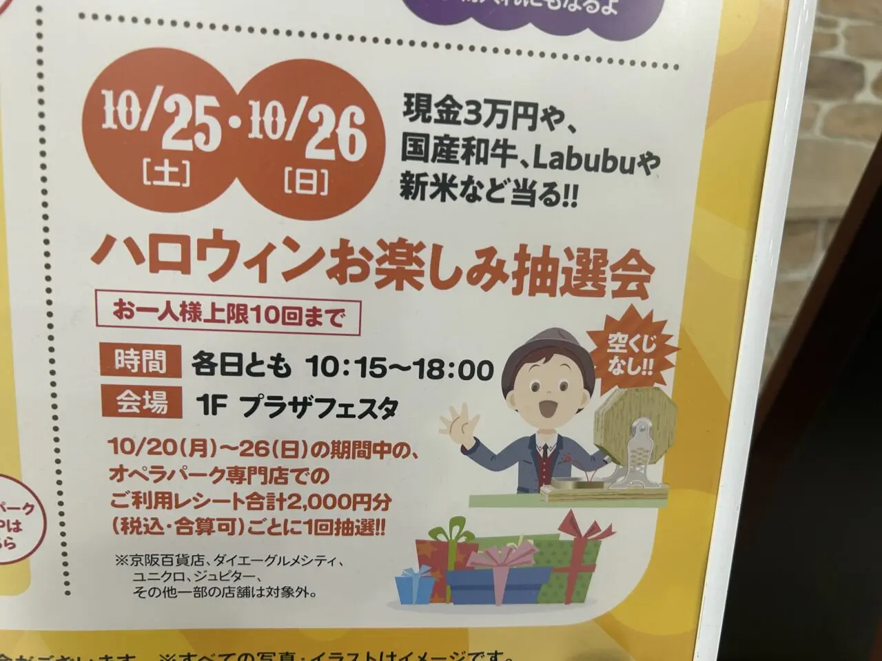 一部対象外の店舗もあります。ポップタウン住道オペラパークホームページ「ハロウィンお楽しみ抽選会」にてご確認ください。