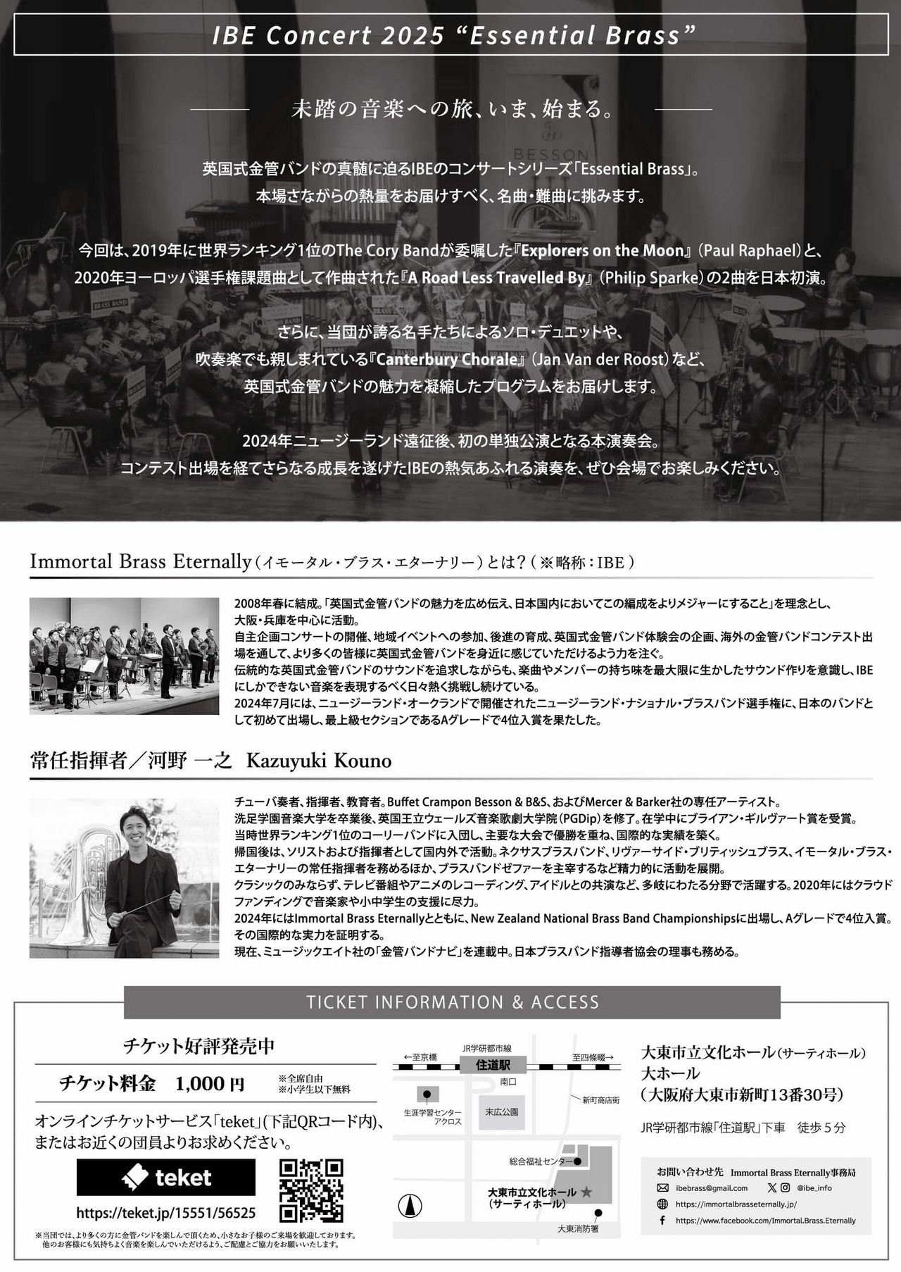【大東市】金管楽器と打楽器のみで構成される英国式金管バンドの本格的なコンサート「IBE Concert 2025 “Essential Brass”」が開催されます!