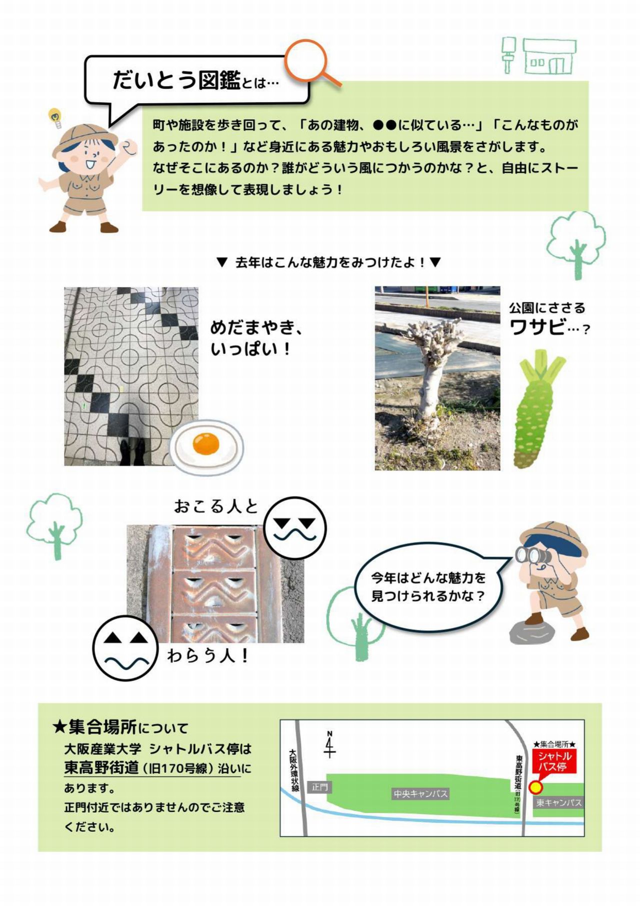 そして、今回ご紹介するのは「だいとう図鑑をつくろう 大阪産業大学編 その2」を開催されるようです。