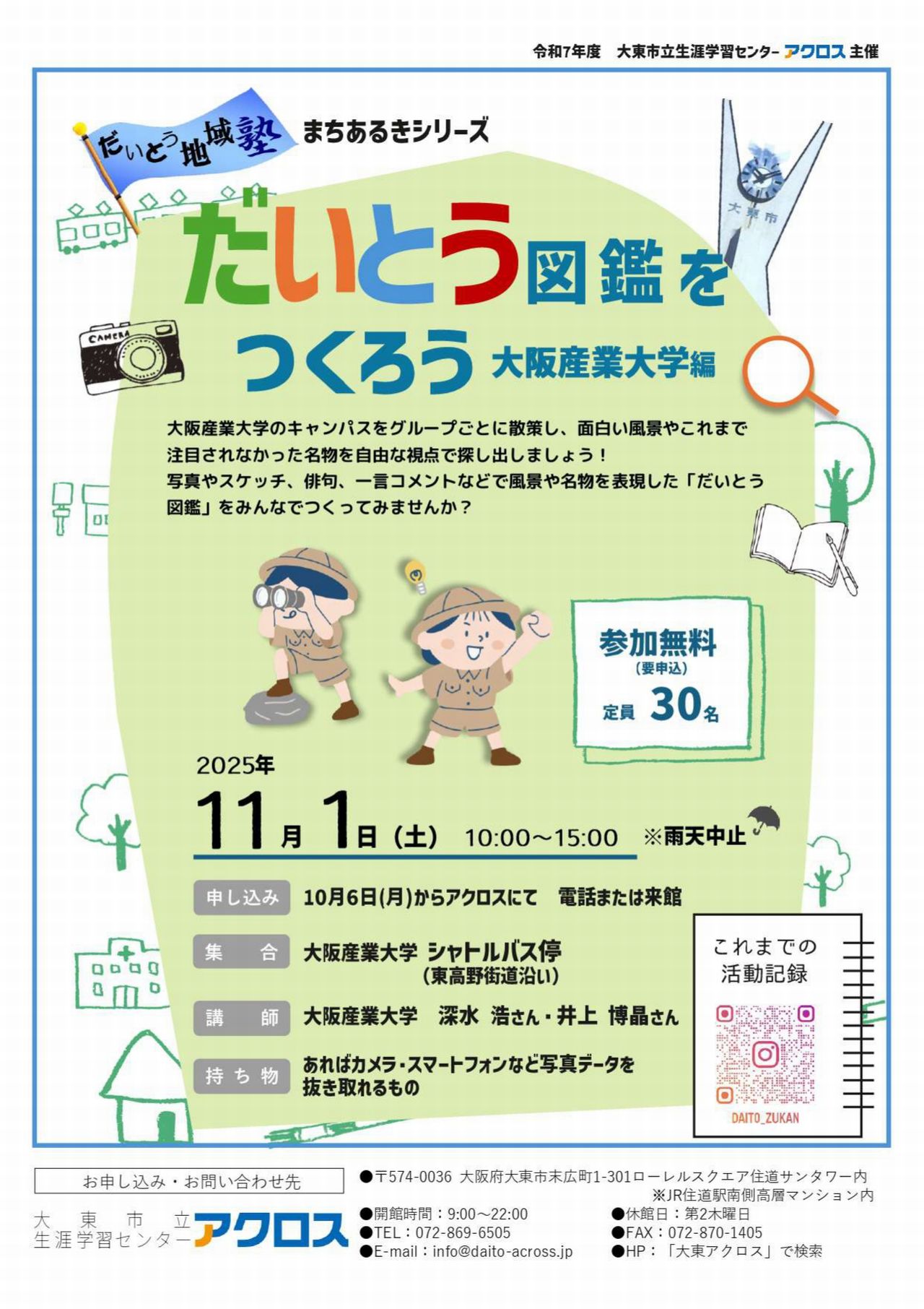 申込などは大東市立生涯学習センター アクロスにお問い合わせ下さいね。