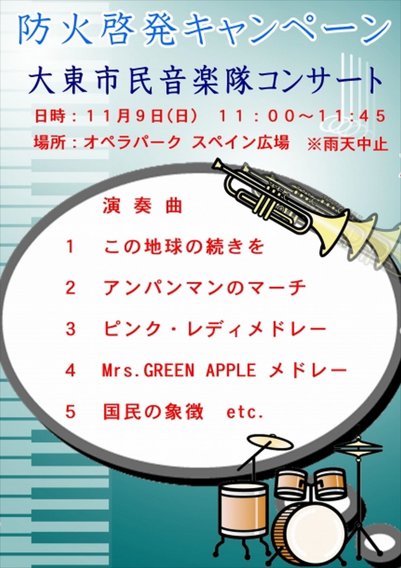 「防火啓発キャンペーン」では「大東市民音楽隊コンサート」を楽しめます。