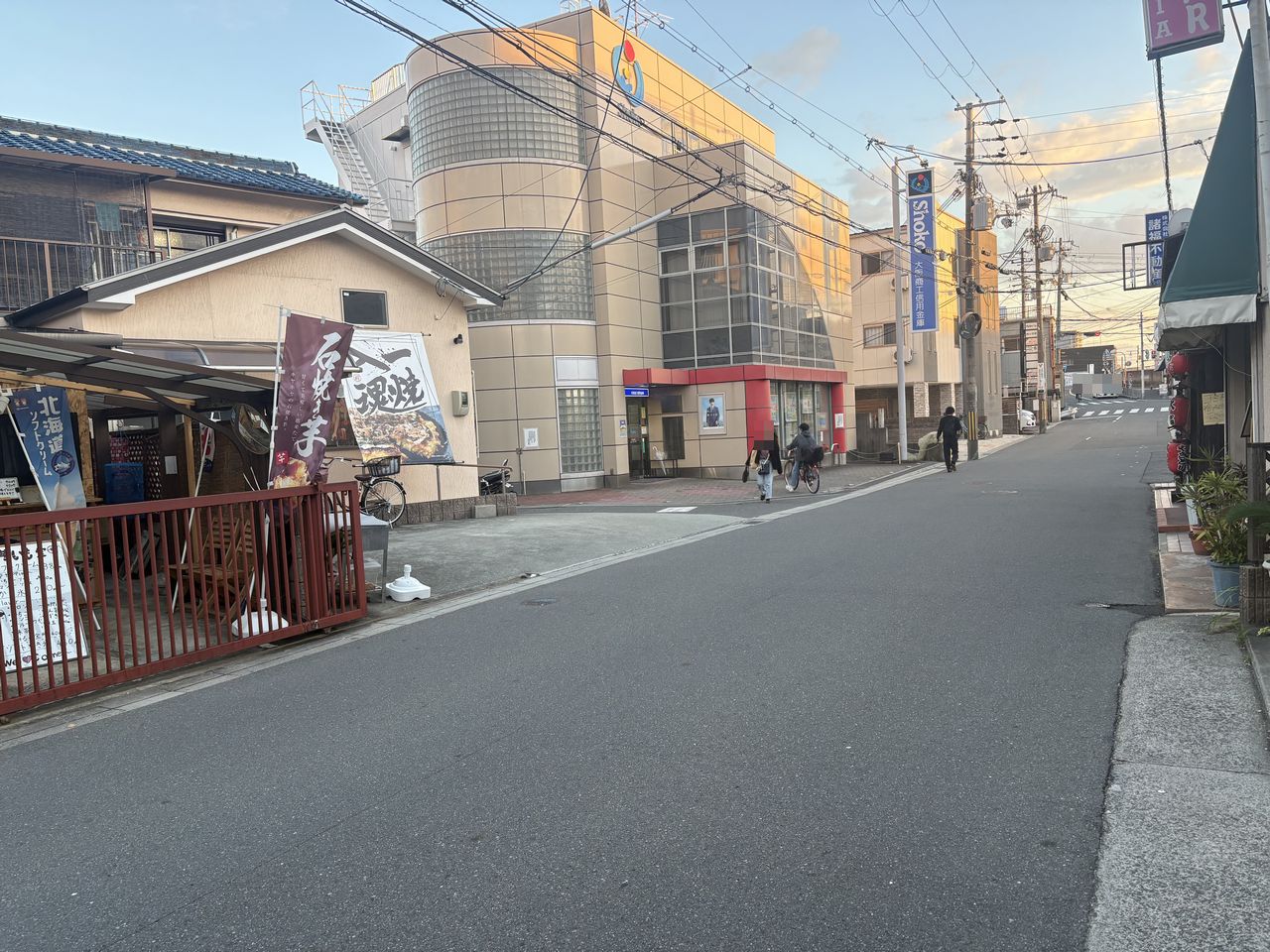 お店の場所は、鴻池新田駅から阪奈道路(北)に向かって真っすぐ進むと右手(東側)にお店があります。写真(↑)奥に進むと阪奈道路です。