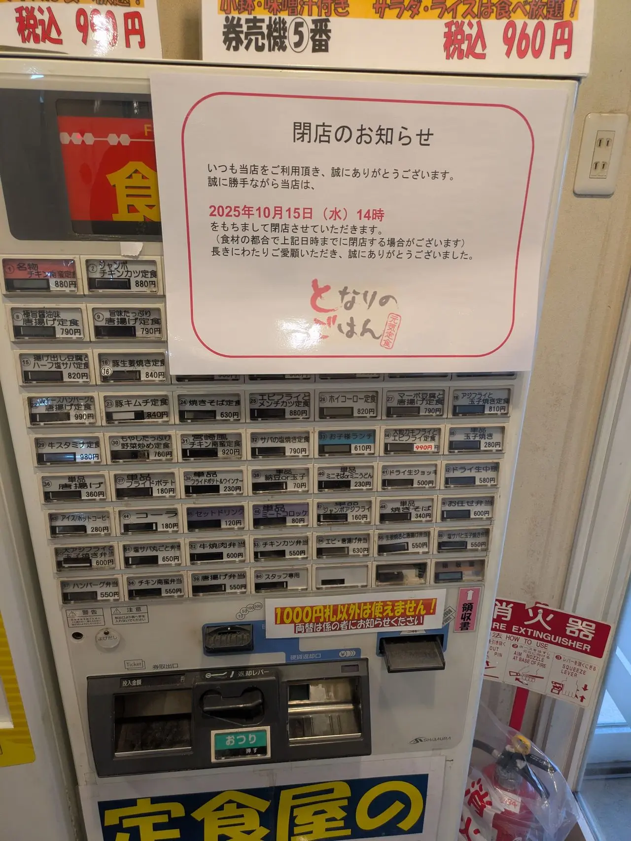 お写真の提供で考えると「元気定食となりのごはん」は2025年10月15日(水)14時で閉店したのではないでしょうか?