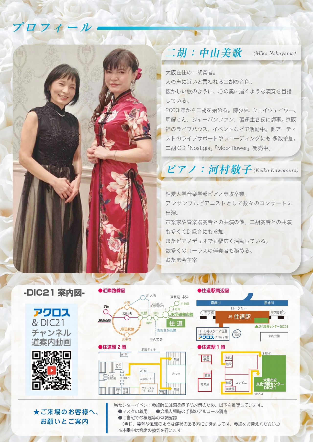 この、二胡とピアノの演奏を大東市立文化情報センターDIC21にて聞くことが出来るようです。