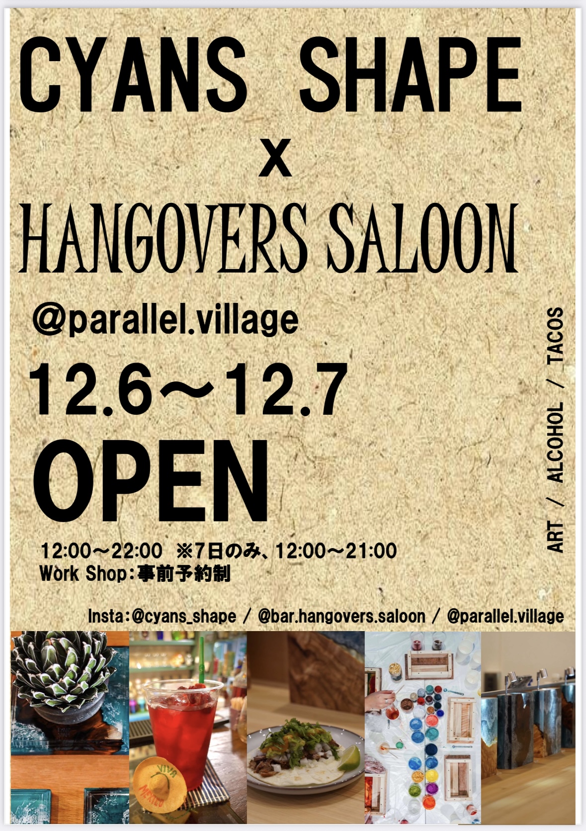 12/6 12/7 の2日間、野崎のパラレルビレッジでシアンズシェイプとハングオーバーズサルーンがアートイベントをするそうです。