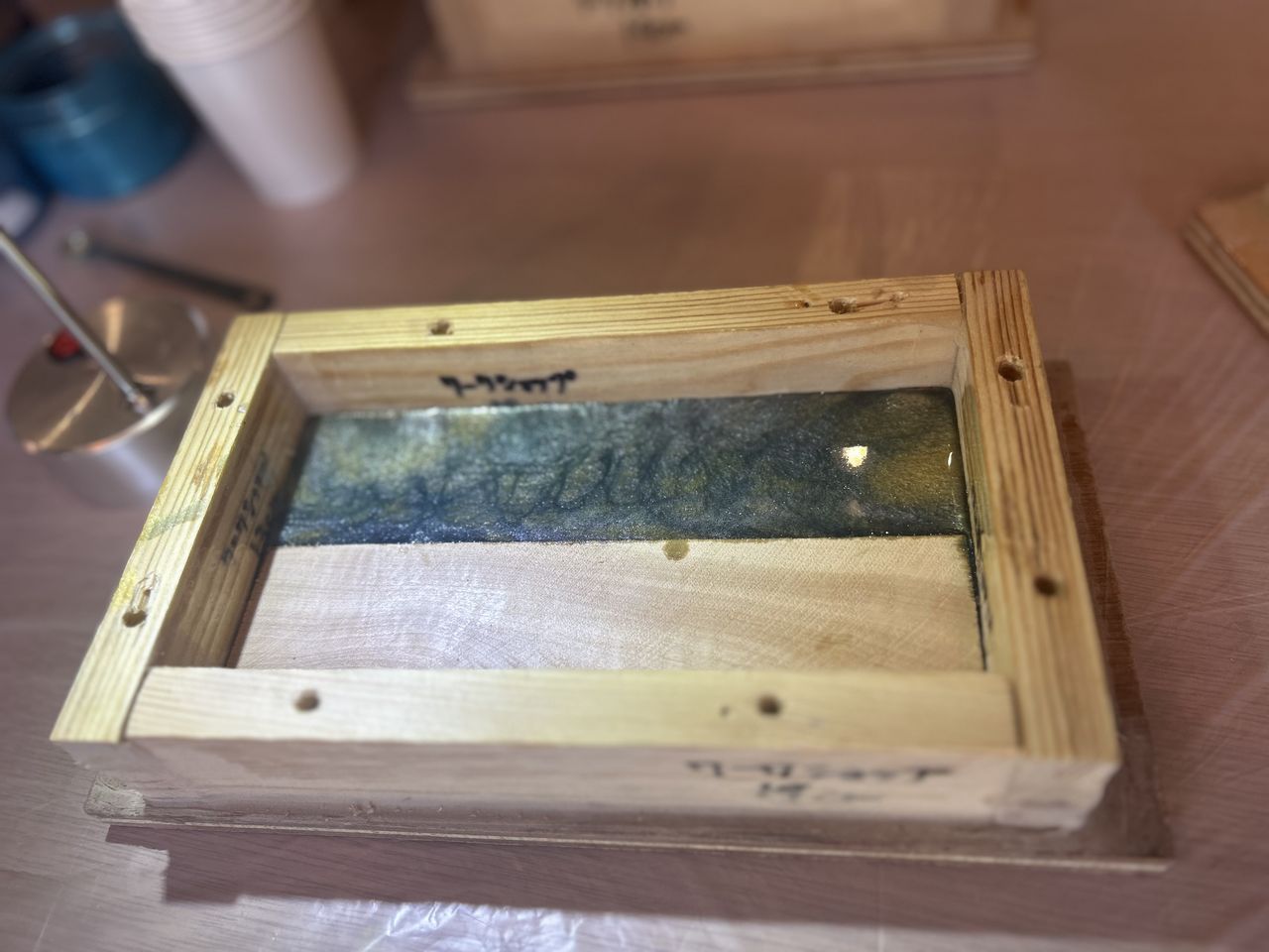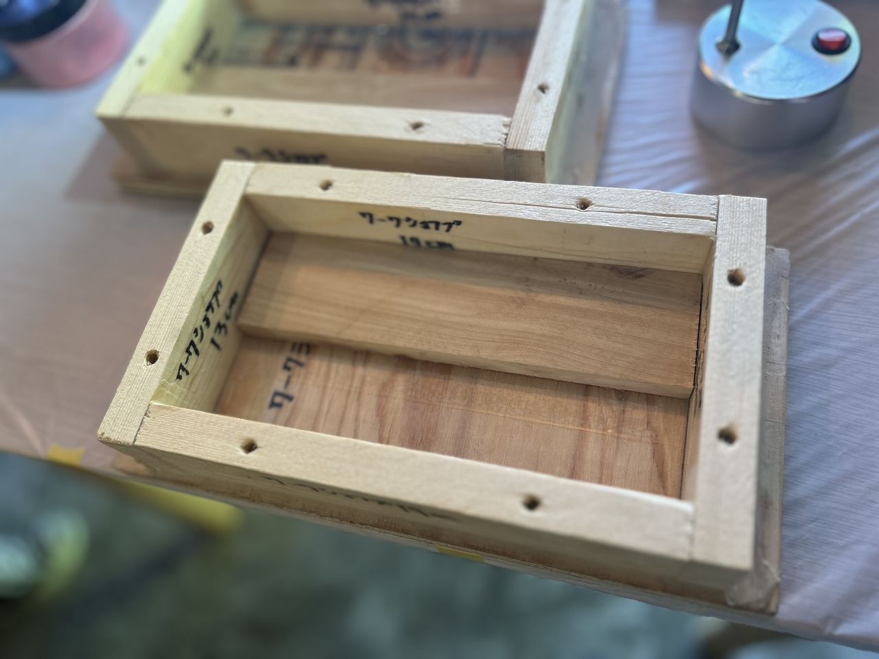 このような木枠に木材を入れて、液体を流し込むだけ!!