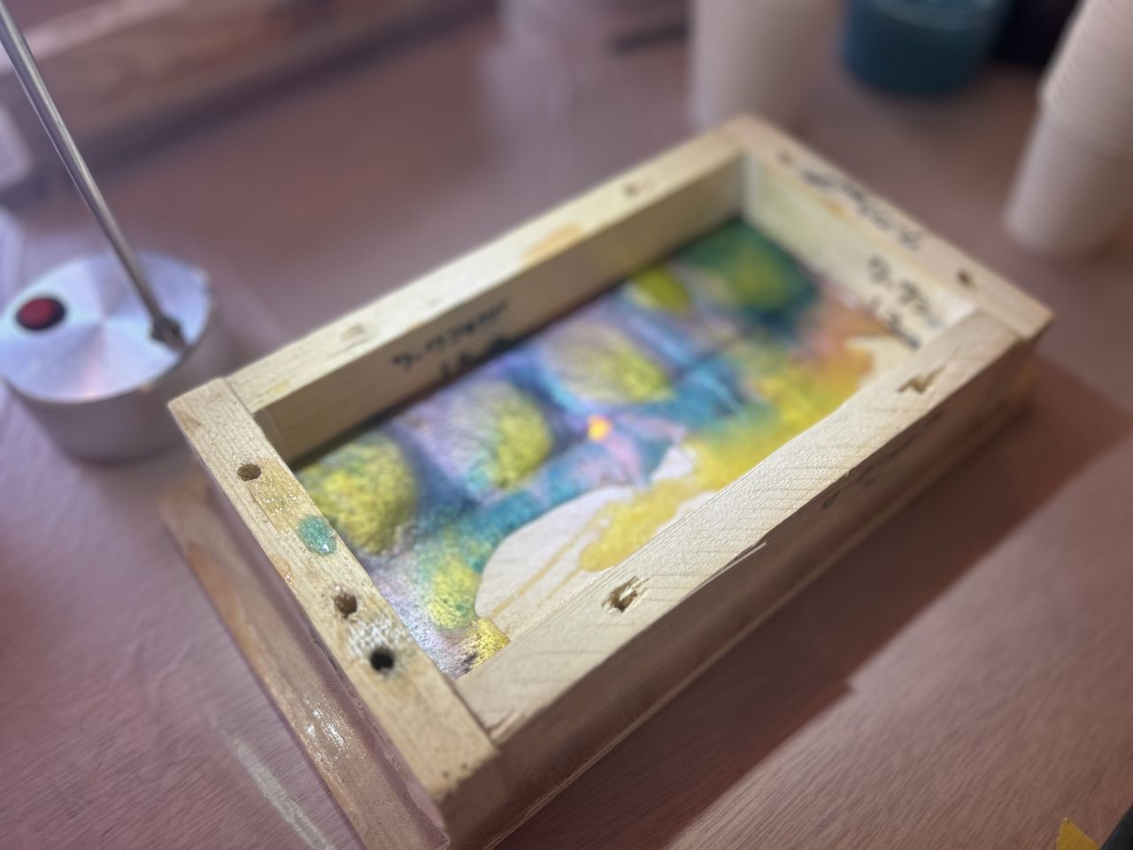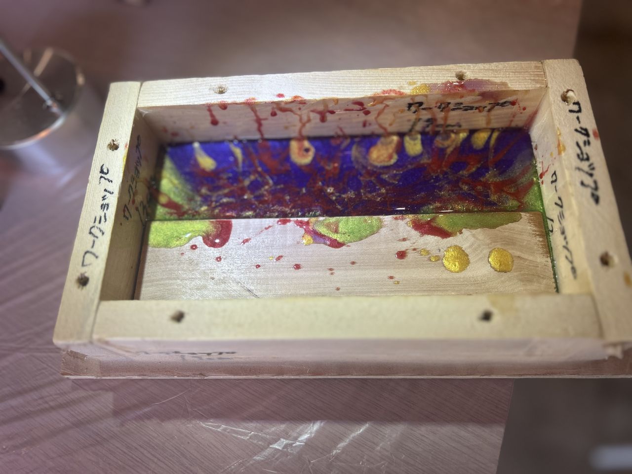 色を流し込んだ時と、固まった時では色が予測できない動きをするようで、予想とは違った色合いになる可能性もあり、それが楽しかったです。
