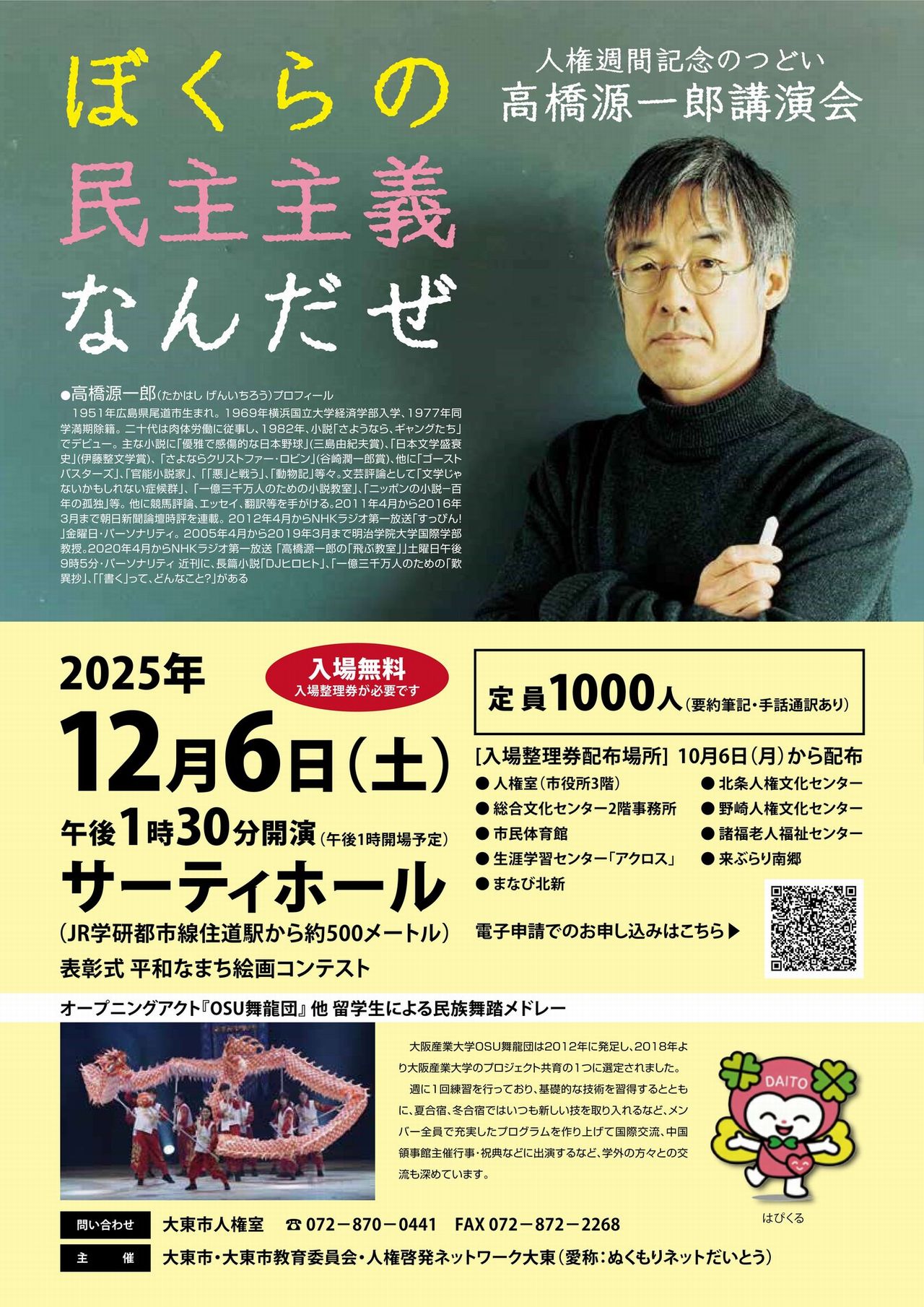 そして…2025年の「人権週間記念のつどい」は、作家の高橋源一郎さんをお招きして、「ぼくらの民主主義なんだぜ」と題した講演会を開催されます。