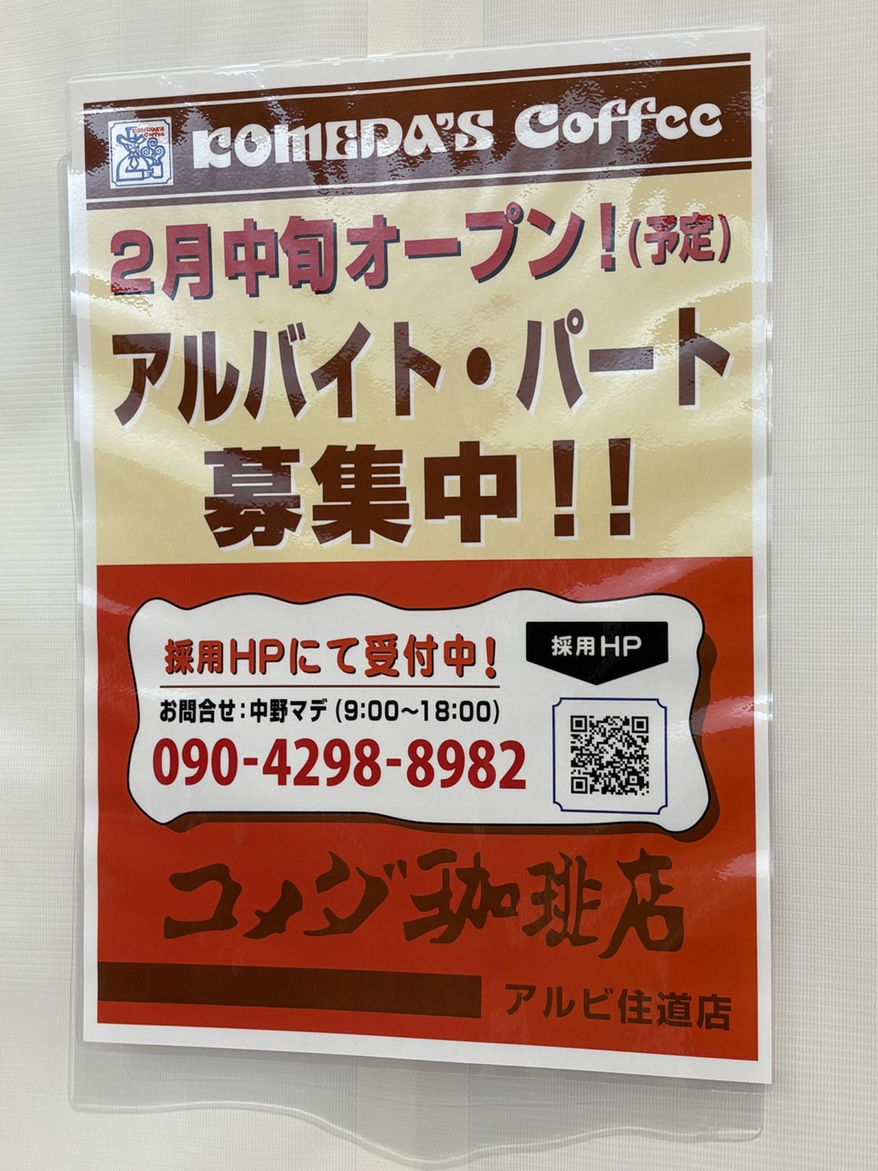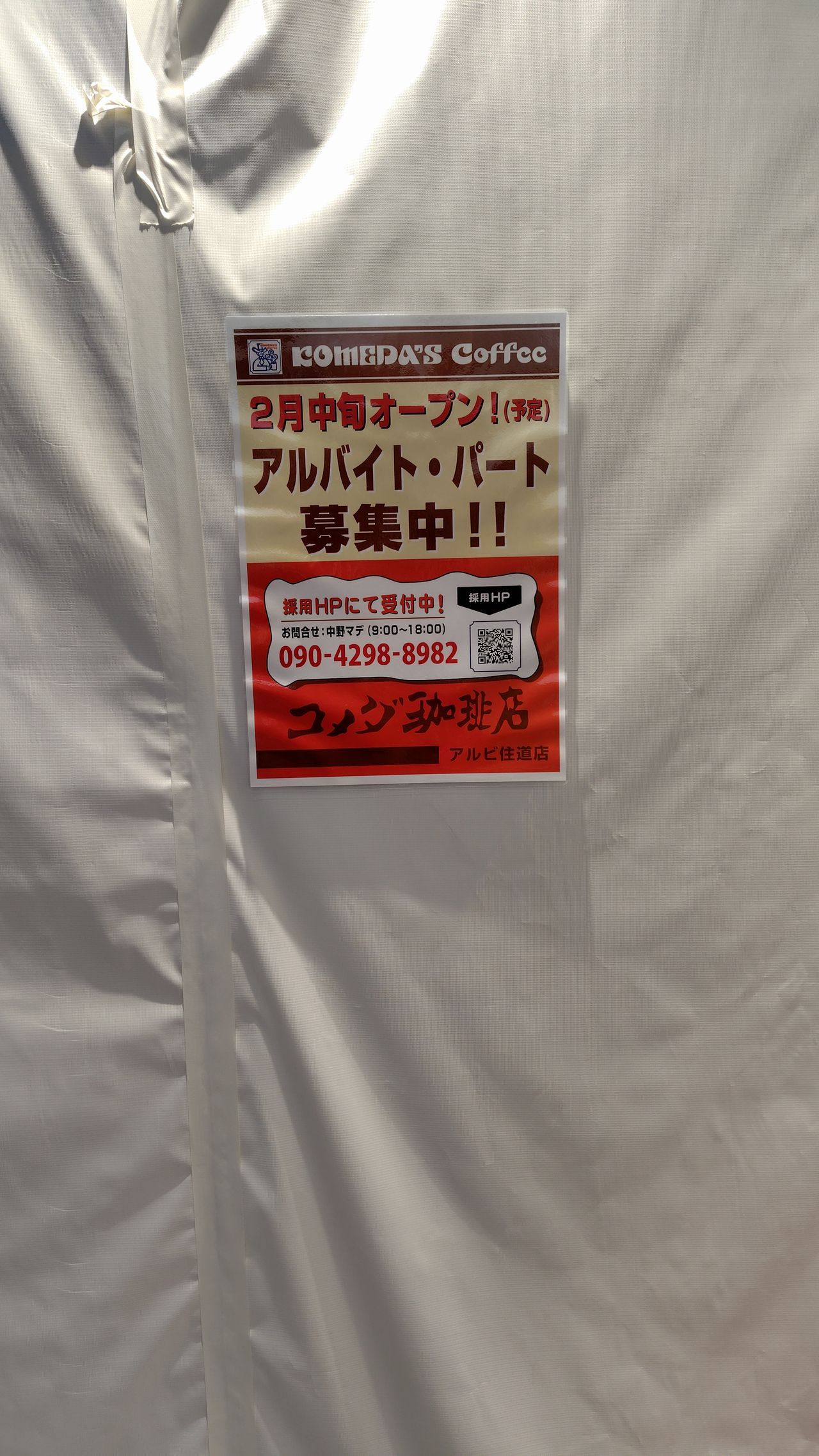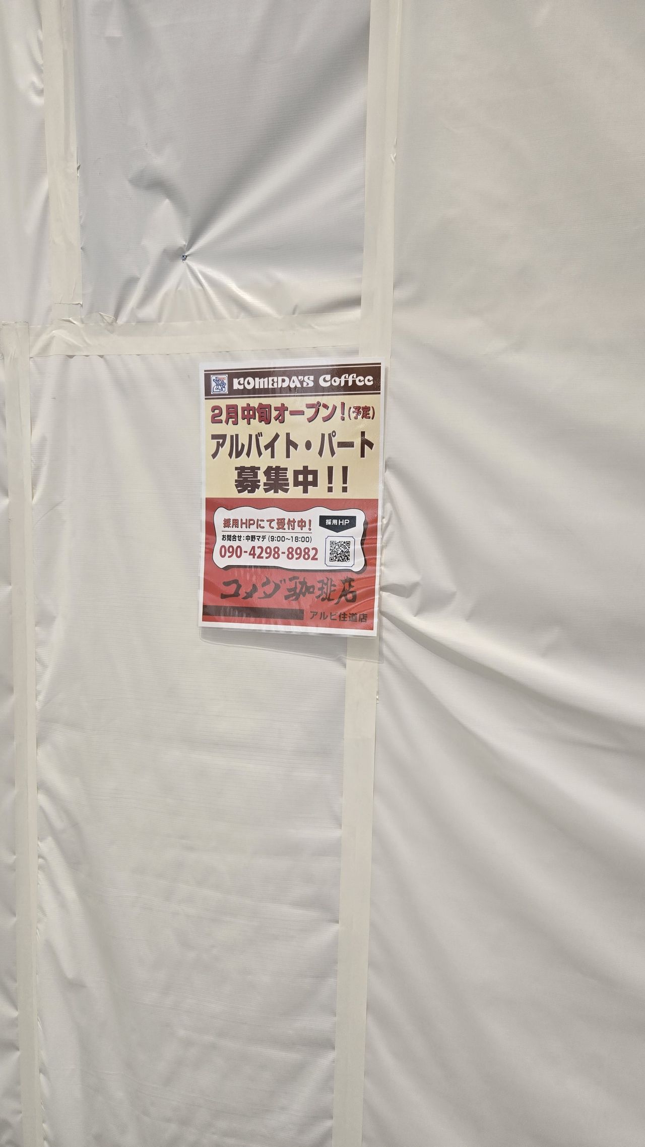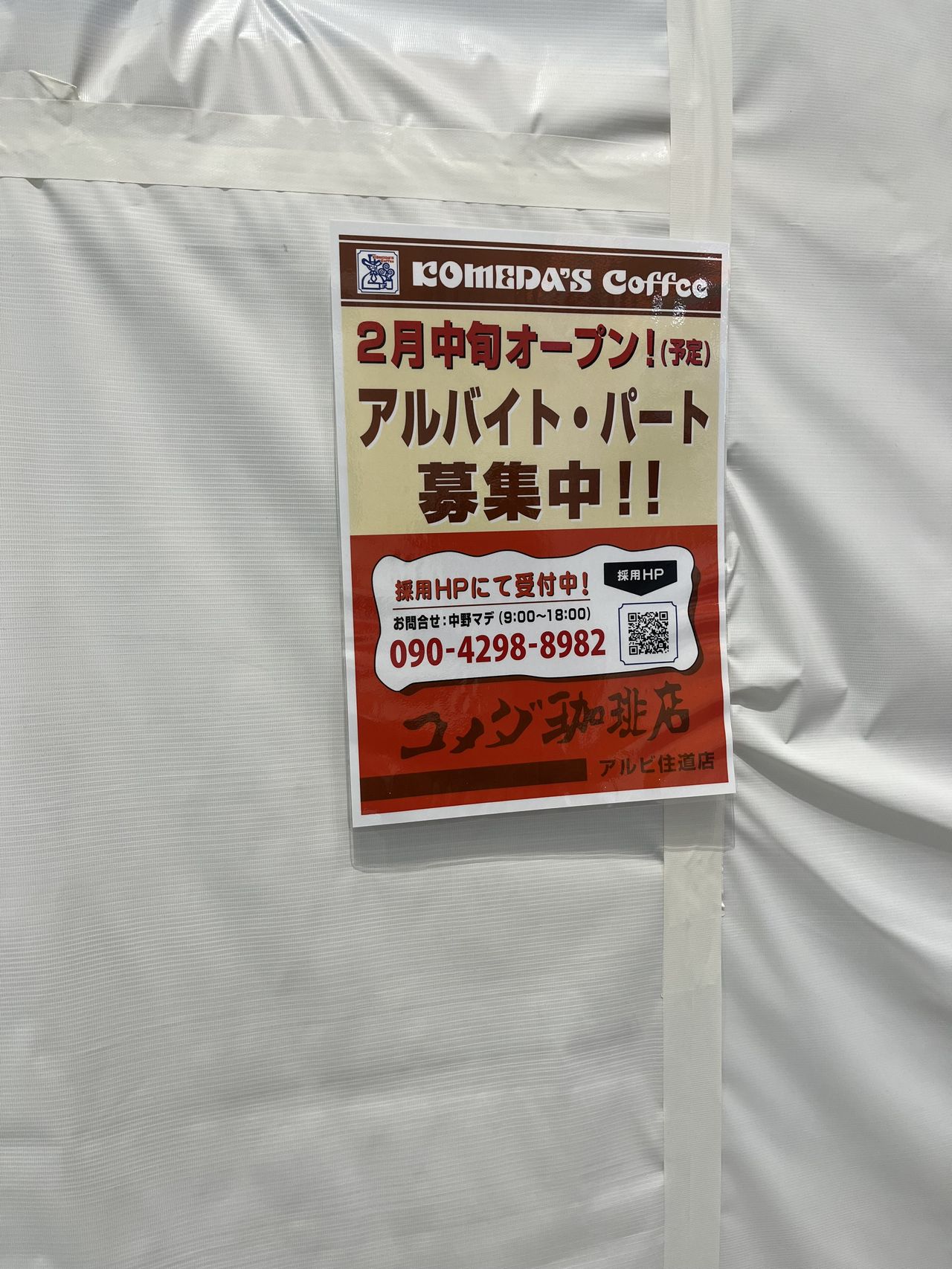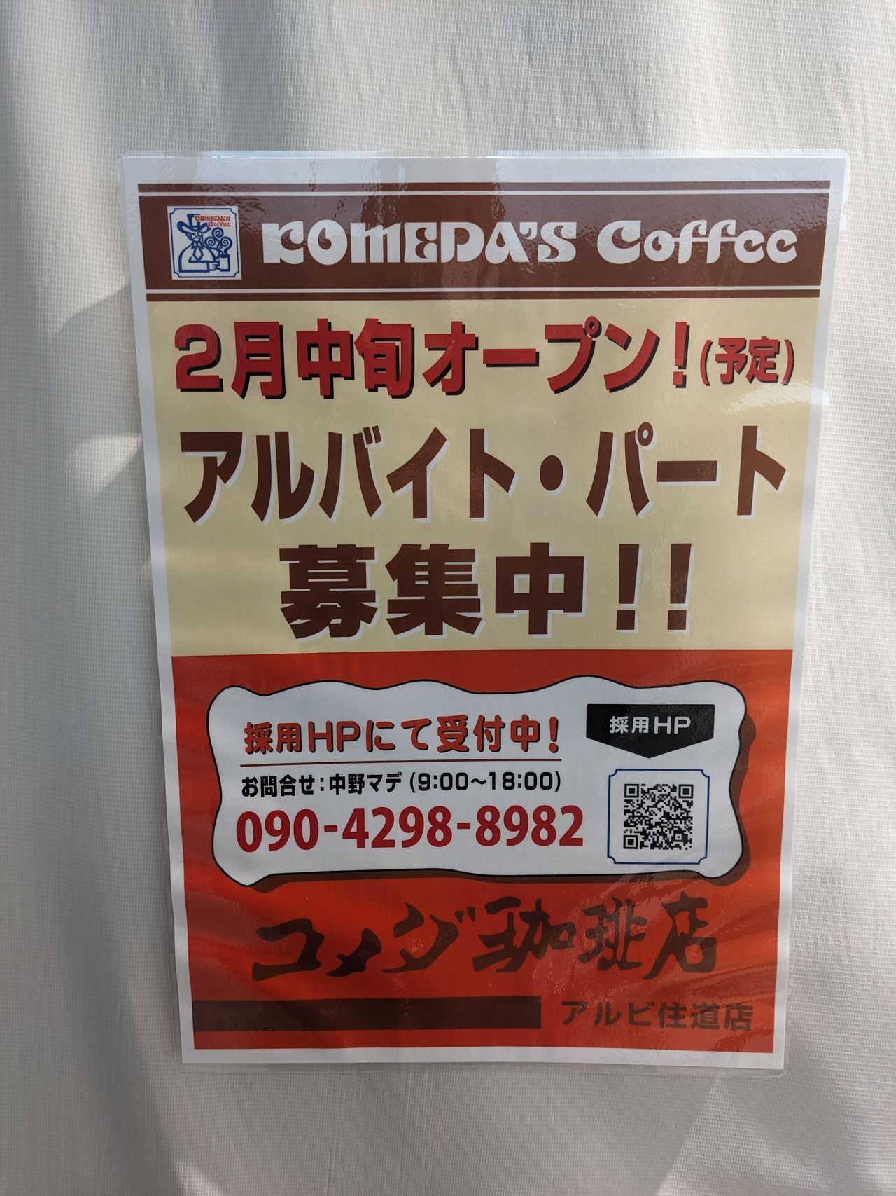 住道駅下の「アルビ住道」、セブンイレブンの隣(旧TSUTAYA跡地)に来年2月中旬予定で「コメダ珈琲」がオープンするようです。
