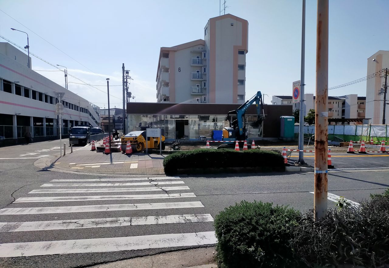 建築確認等の看板が何もないので断定はできませんが、コンビニエンスストアのような建物が建っています。