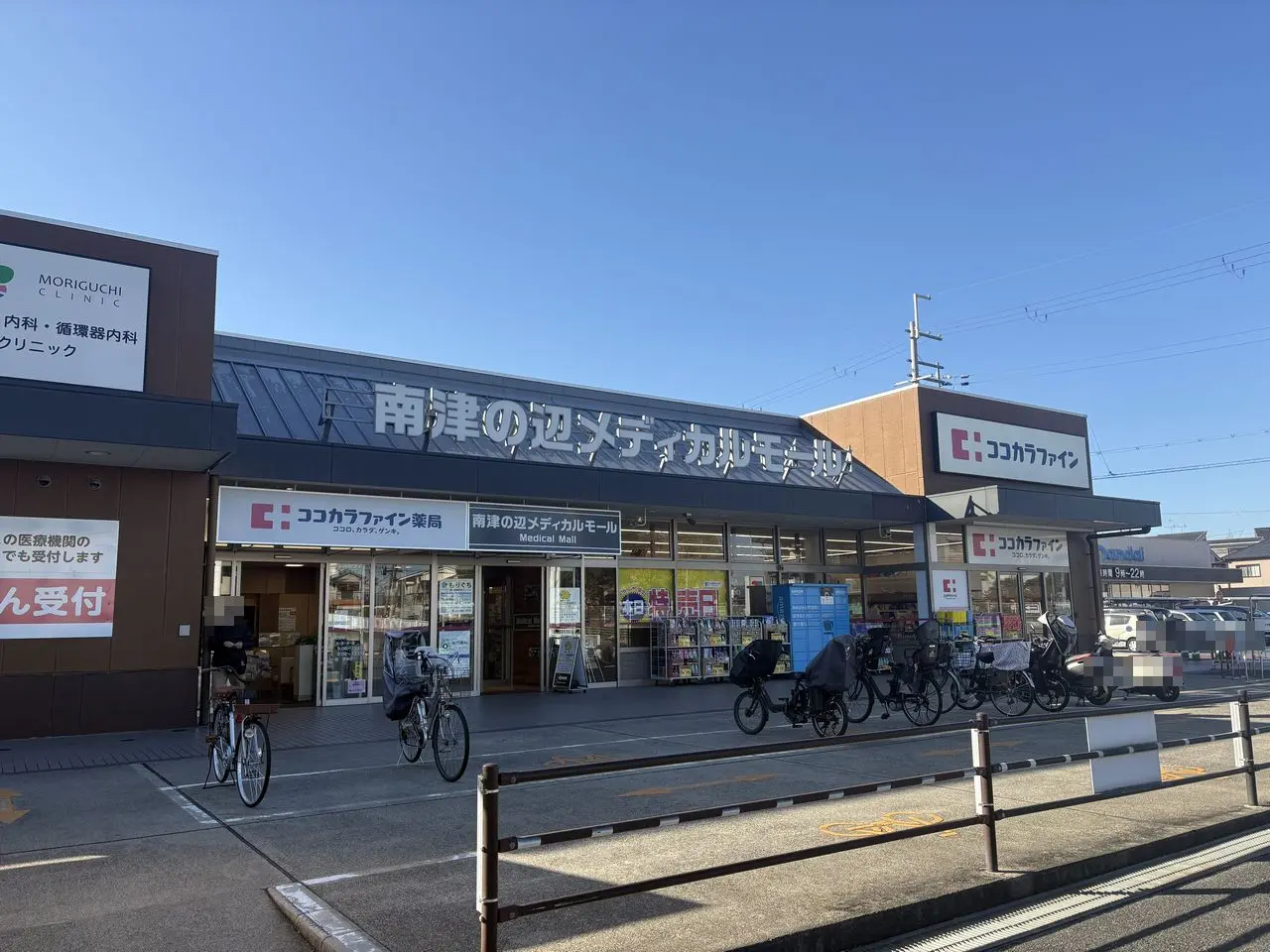 万代南津の辺店の東側にある南津の辺メディカルモールには色々な病院やドラッグストア(ココカラファイン南津の辺店)や処方箋薬局などが入っています。