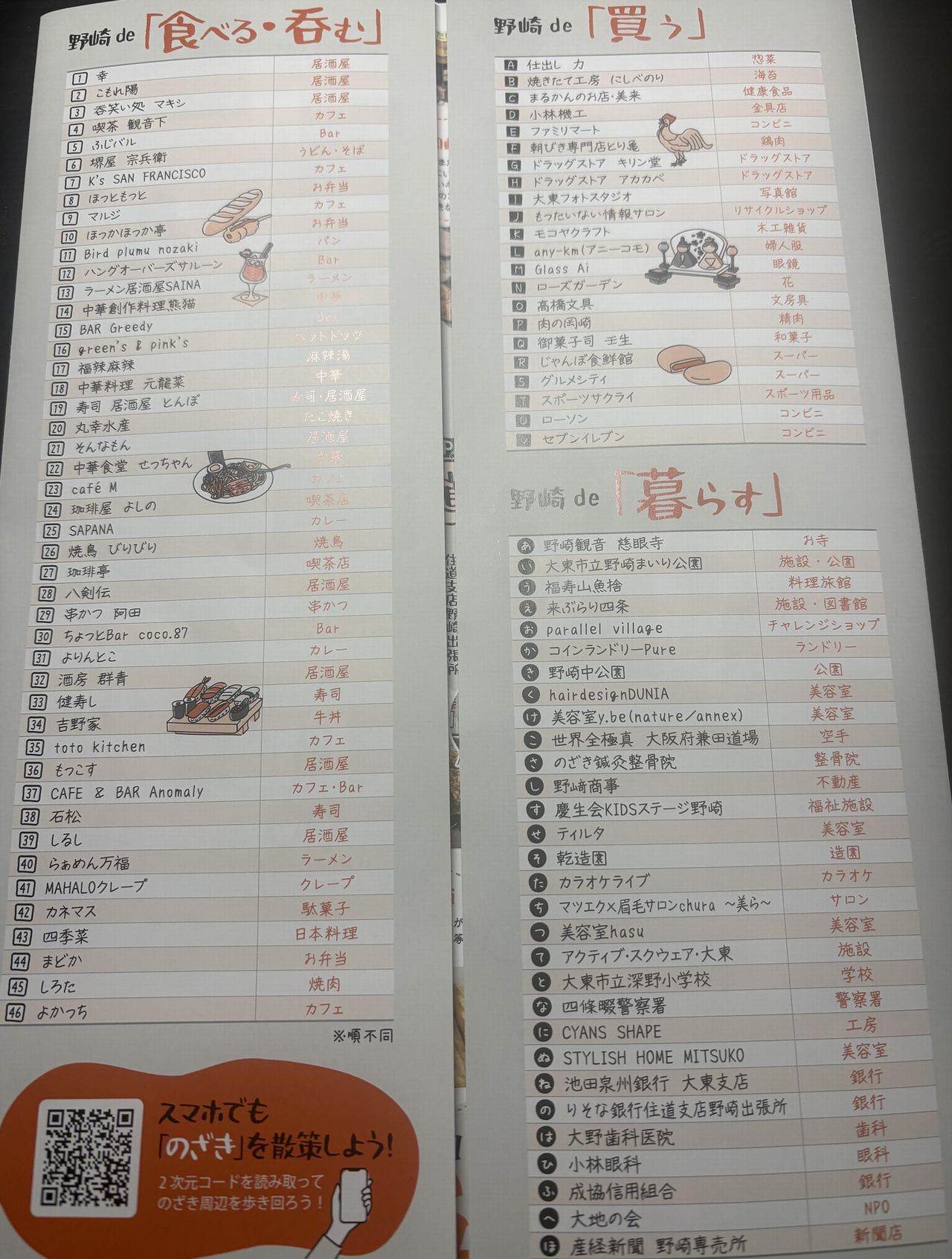 「のざき周辺マップ」は現在のところ、野崎の一部のお店に置いておられるようですが、今後は市役所や駅などにも置いて頂く予定だそうです。