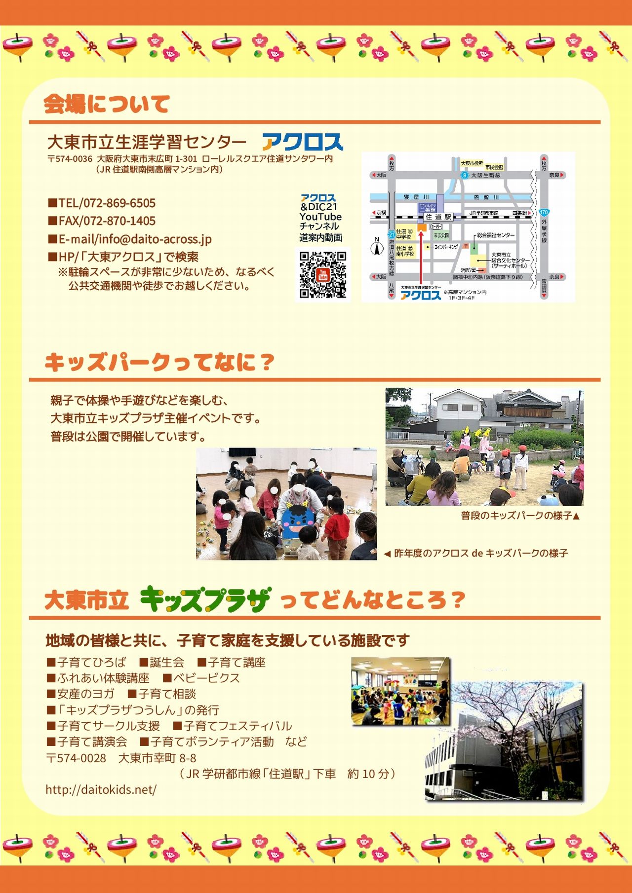 【大東市】2026年最初の「アクロスdeキッズパーク」を開催!!親子のふれあいあそびや昼食タイムを楽しく過ごしましょう!!