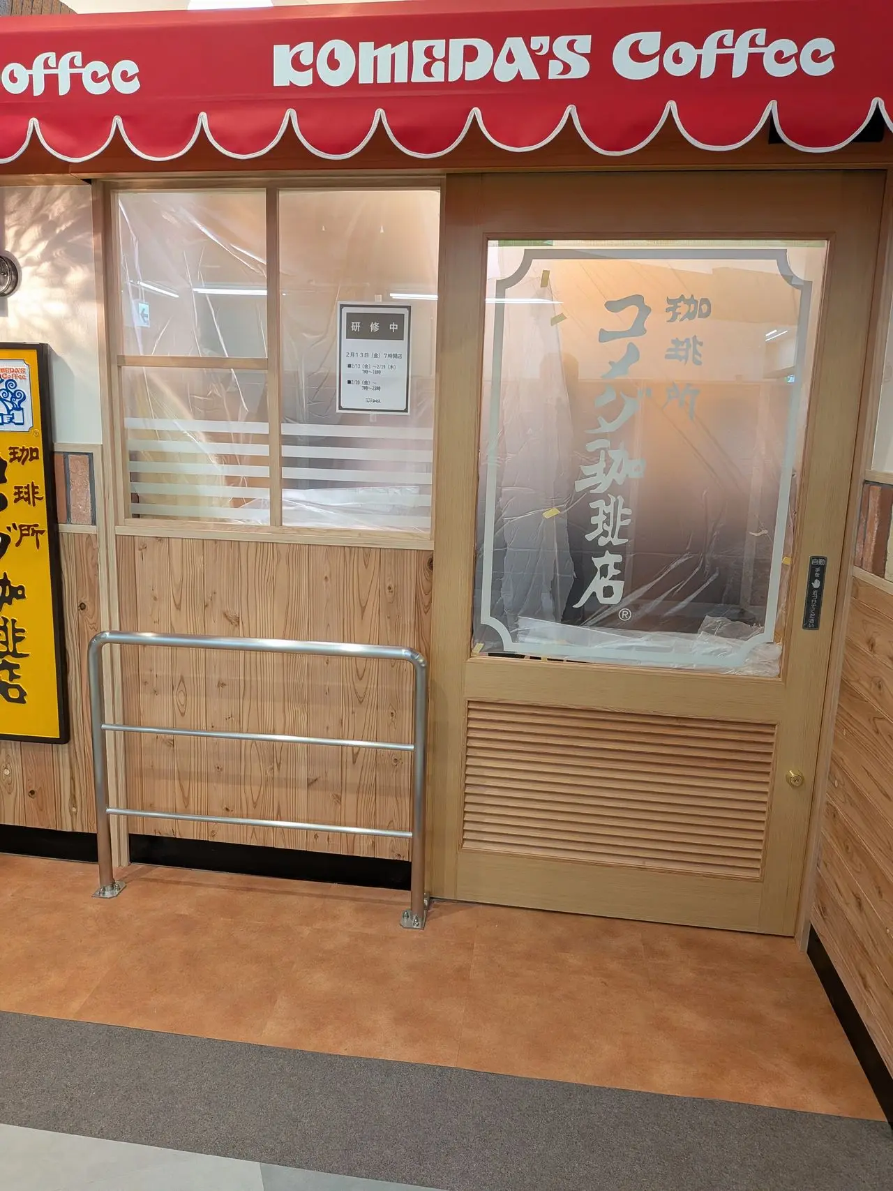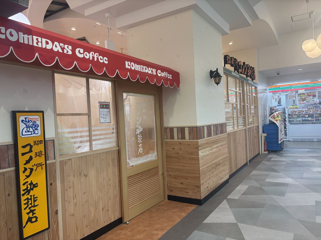 以前から何度かお伝えしている住道駅1階の「セブン-イレブン ハートインアルビ住道店」のお隣にオープン予定のコメダ珈琲店!