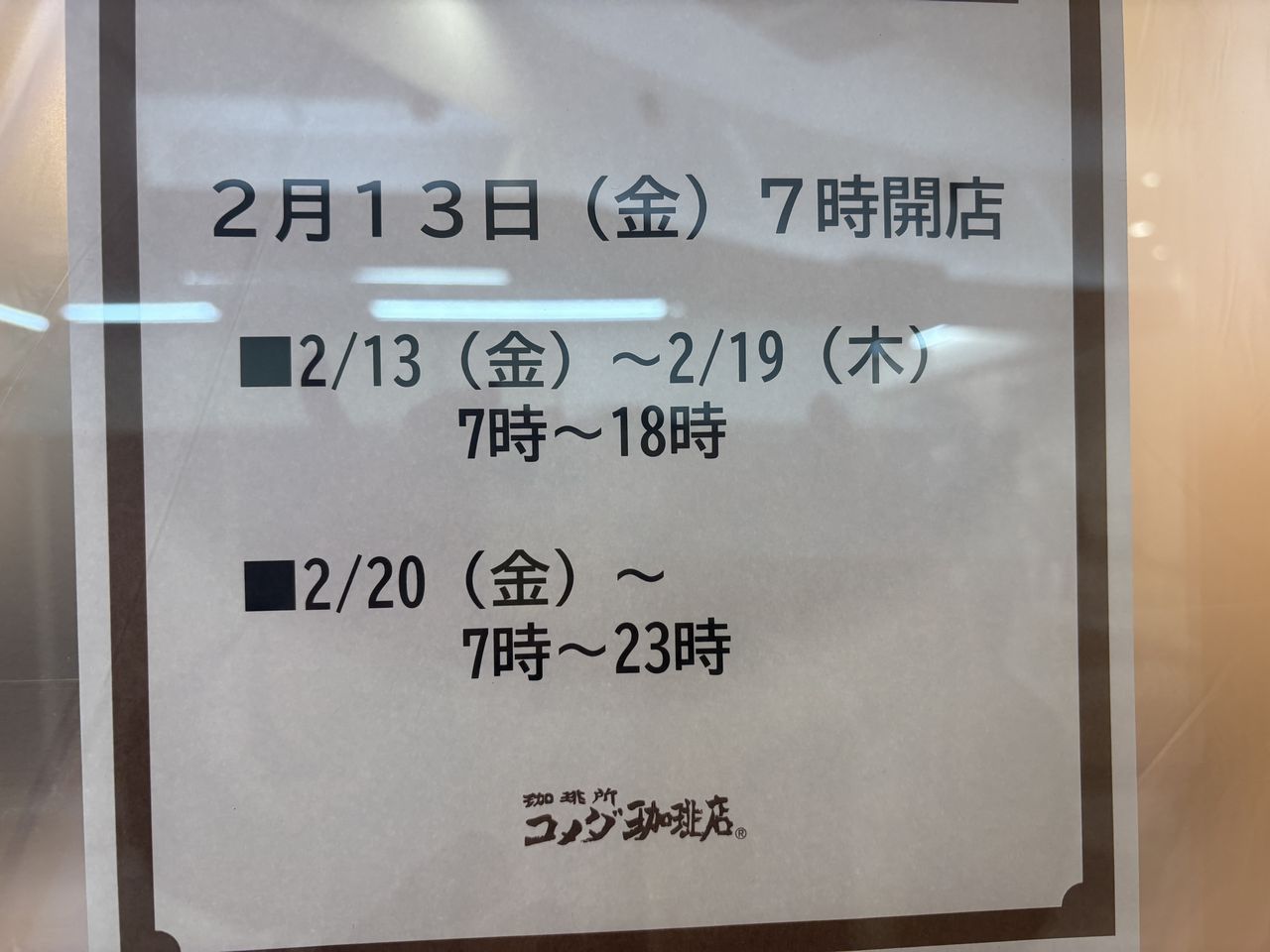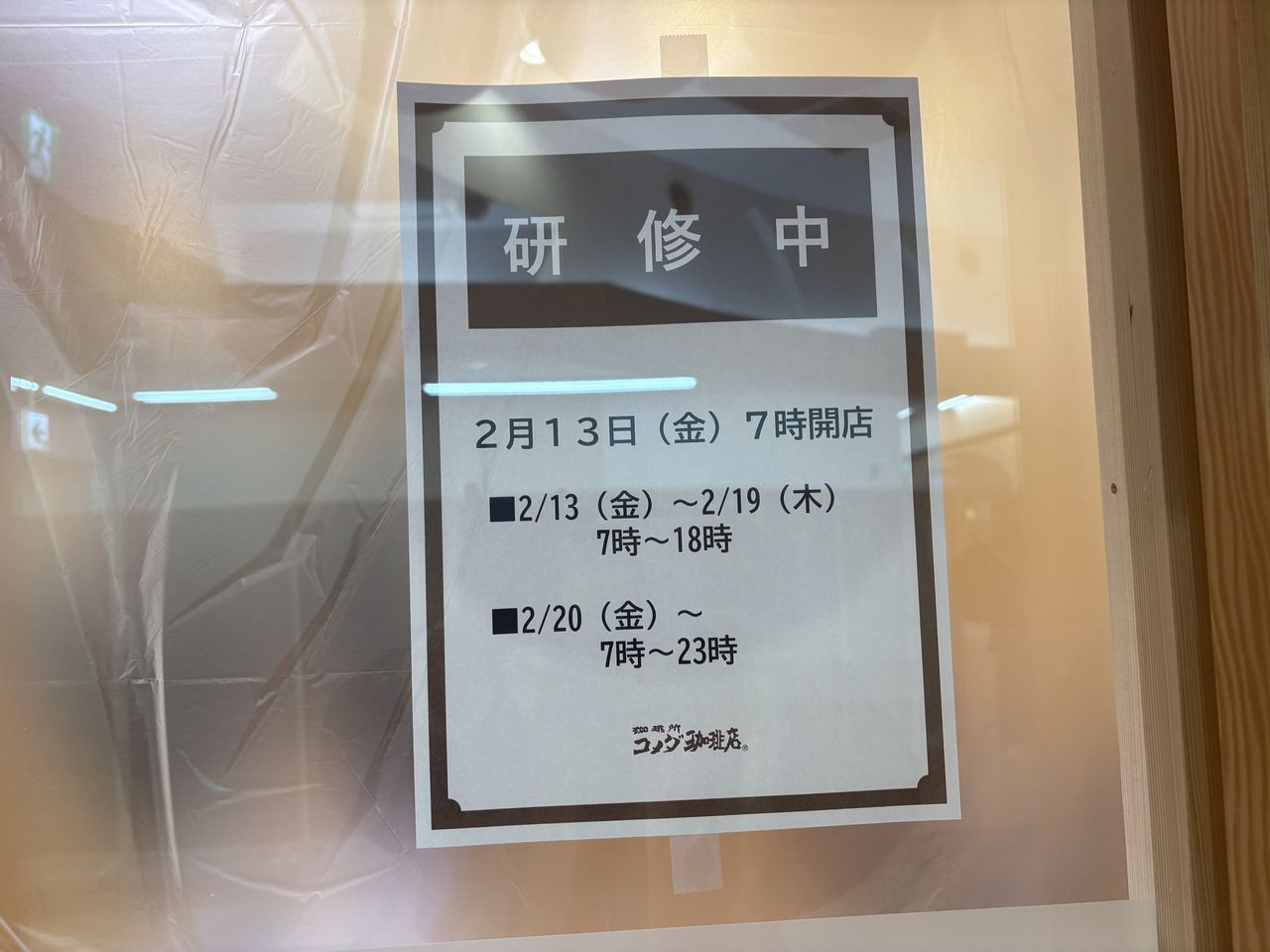 住道駅下のコメダさん開店日掲示されてました。