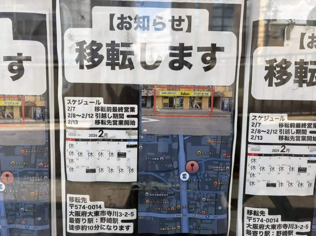 2026年2月8日(日)から2月12日(木)までは引っ越し期間となり、2026年2月13日(金)からは新店舗での営業開始となるようですね。