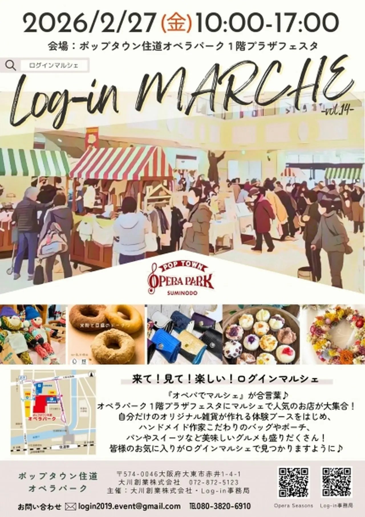 【大東市】ポップタウン住道オペラパークにて人気のLog-in MARCHE (ログインマルシェ)が2月にも開催されます。