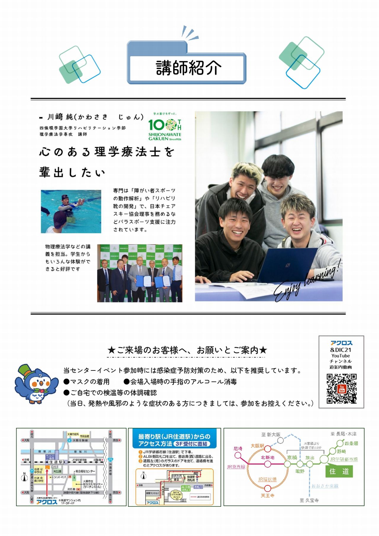 講師は、四條畷学園大学リハビリテーション学部の川﨑さんという方です。