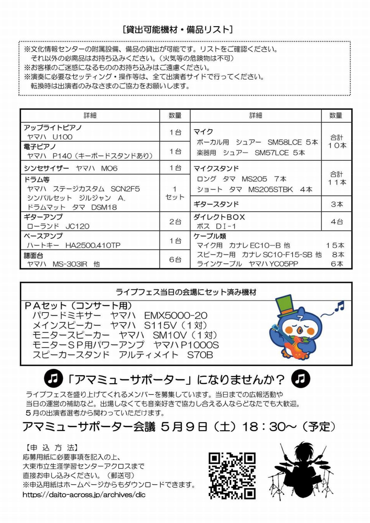 また、今年も機材の貸し出しなどもあるようです。