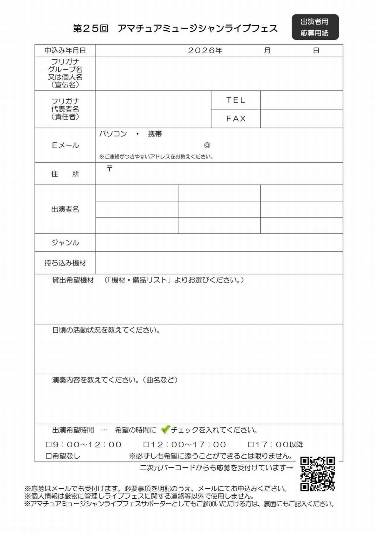 詳細については「第25回 アマチュアミュージシャンライブフェス 募集要項」を必ずご確認下さい。