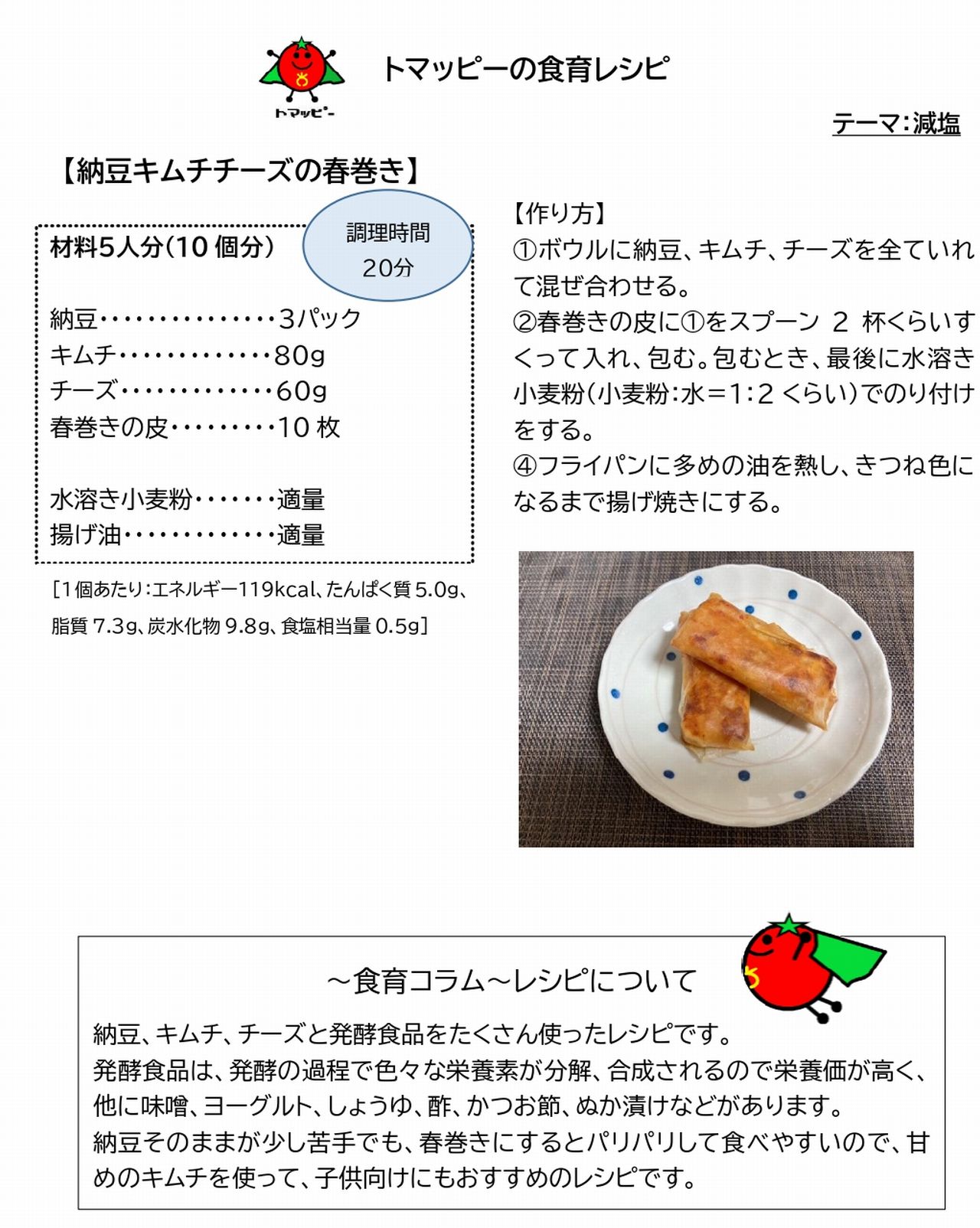 【大東市】毎月19日は食育の日!!今月は発酵食品大集結!お子様でも食べやすい春巻きに!