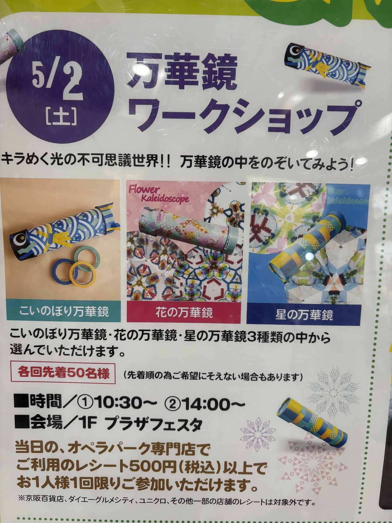 【大東市】ゴールデンウィークは楽しいイベントが盛りだくさん! まずはゴールデンウィークのイベント第1弾!ポップタウン住道オペラパークで万華鏡!