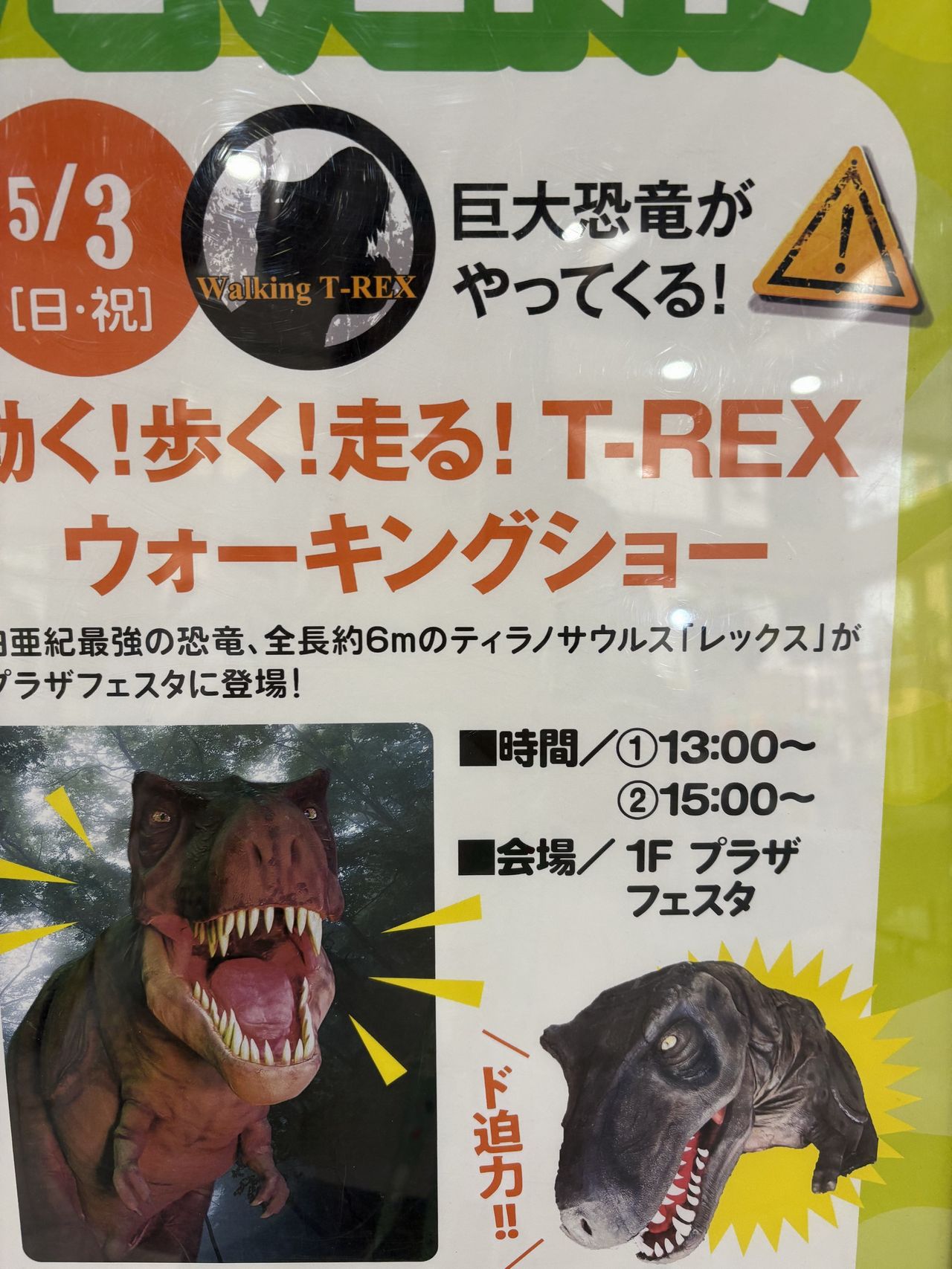 「動く!歩く!走る!T-REXウォーキングショー」の開催日は2026年5月3日(日・祝)です。