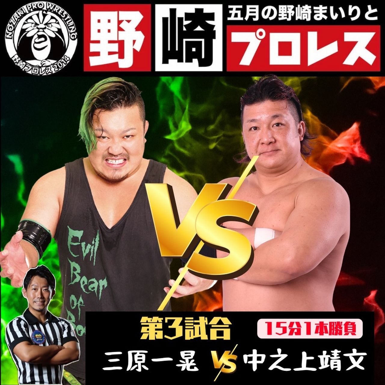 ◎ 第3試合:シングルマッチ 15分1本勝負 中之上靖文 vs 三原一晃!
