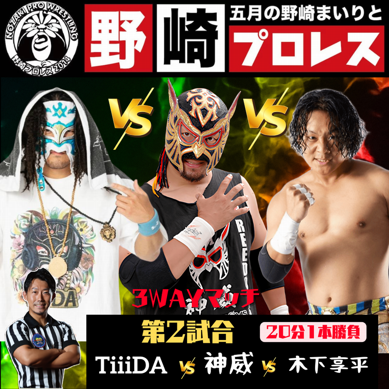 ◎ 第2試合:3WAYマッチ 20分1本勝負 神威 vs TiiiDA vs 木下享平!