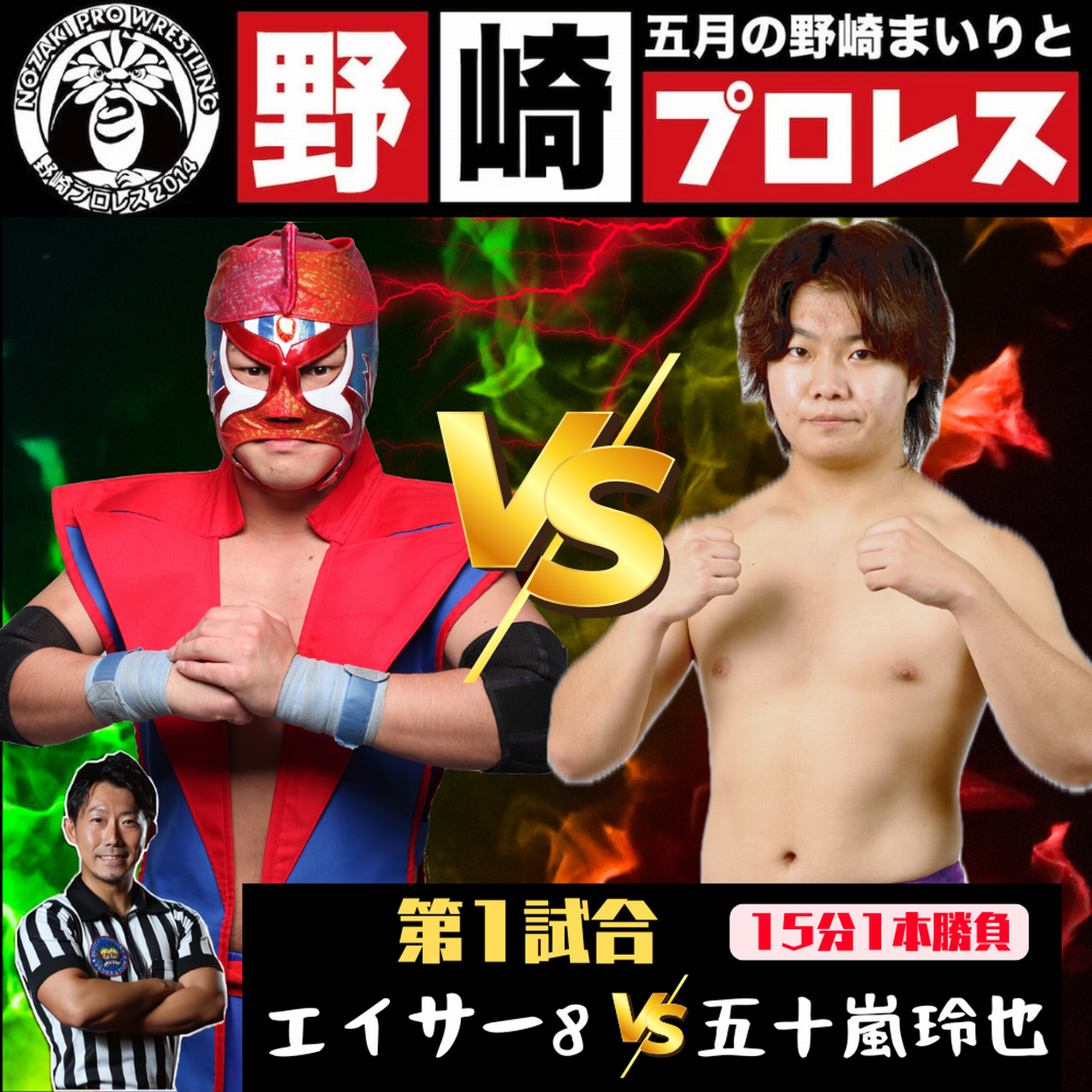 ◎ 第1試合:シングルマッチ15分1本勝負 五十嵐玲也 vs エイサー8!