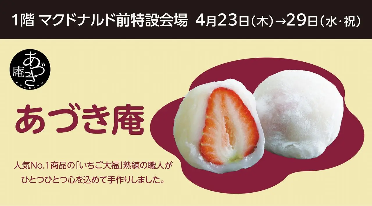 そして2026年4月23日(木)~29日(水・祝)までは、いちご大福が人気の「あづき庵」さんが出店されています。