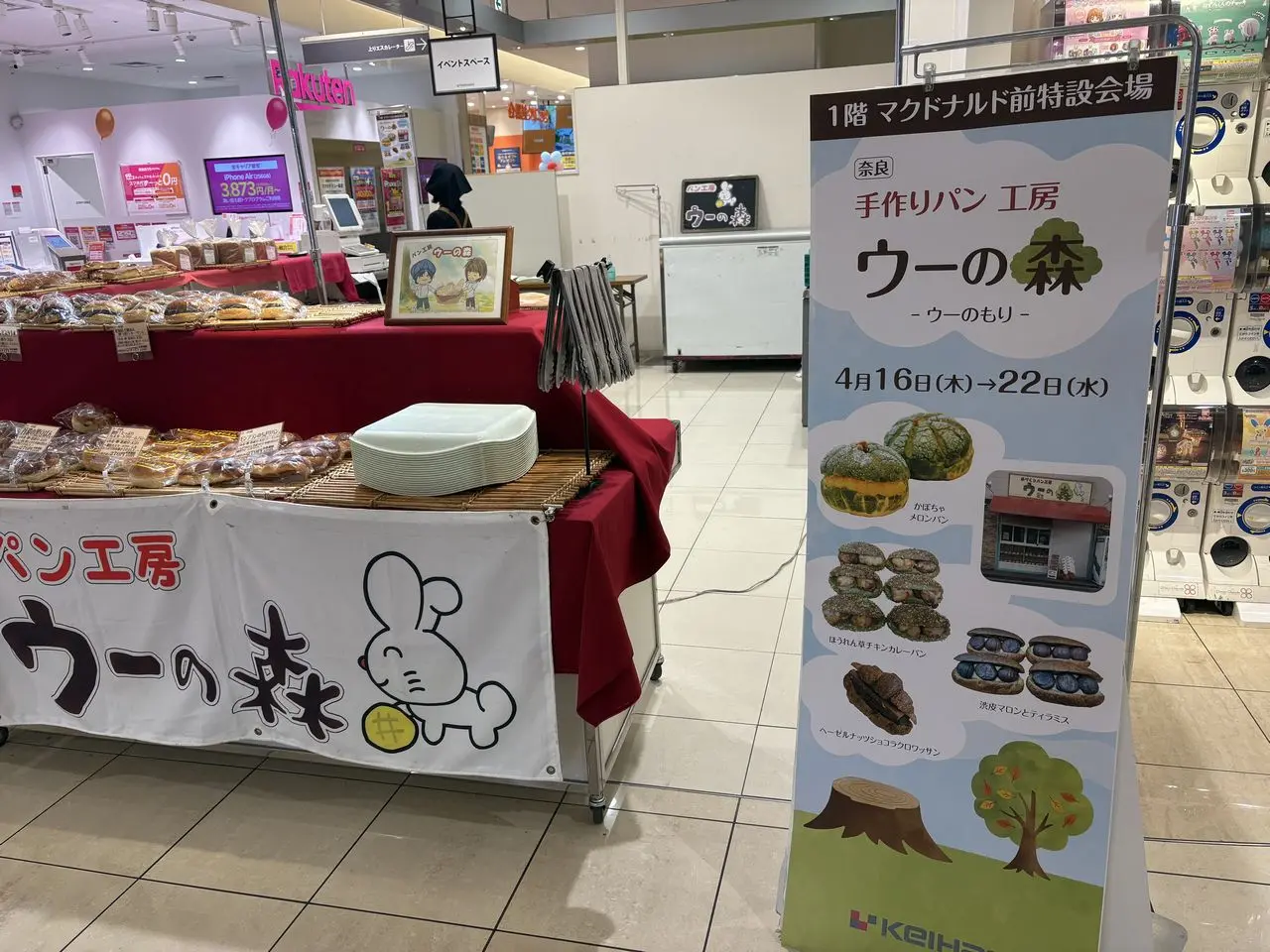 2026年4月15日(水)まで出店されていた「焼き菓子工房shion」さんに続いて、2026年4月16日(木)~4月22日(水)までは「手作りパン工房ウーの森」が出店されていました。